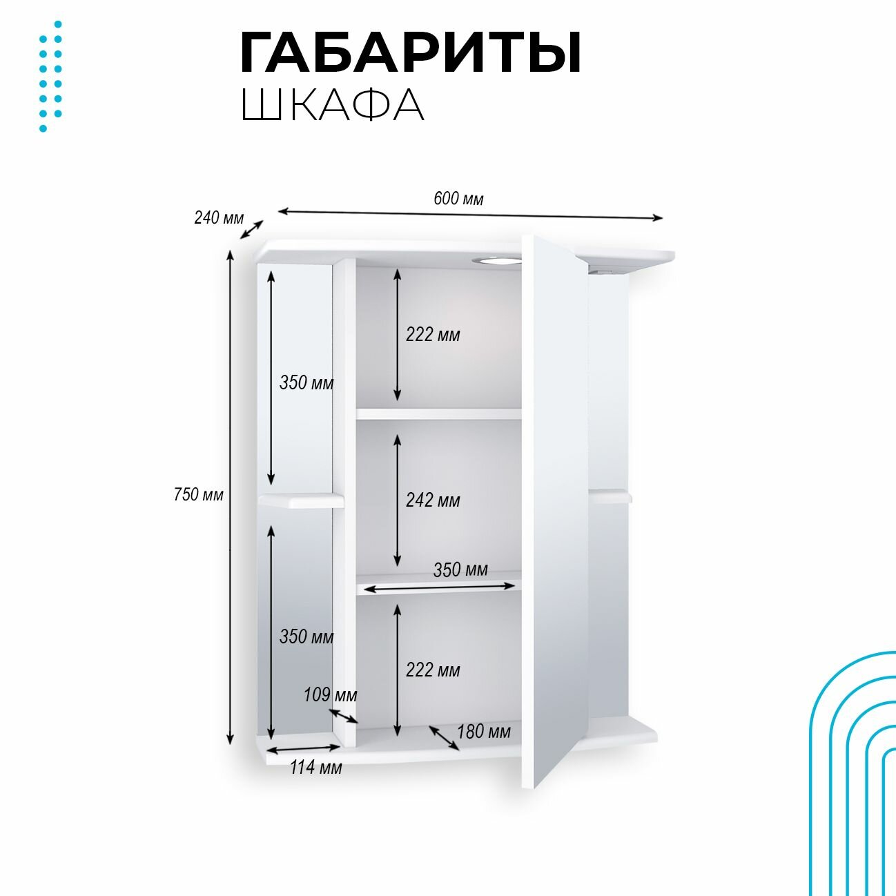 Шкаф в ванную с зеркалом Авила 60, с подсветкой, правый