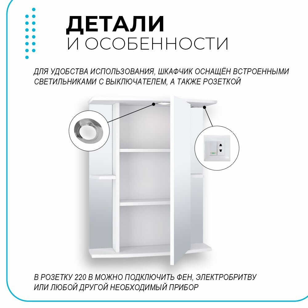 Шкаф в ванную с зеркалом Линда 60, с подсветкой, правый, белый