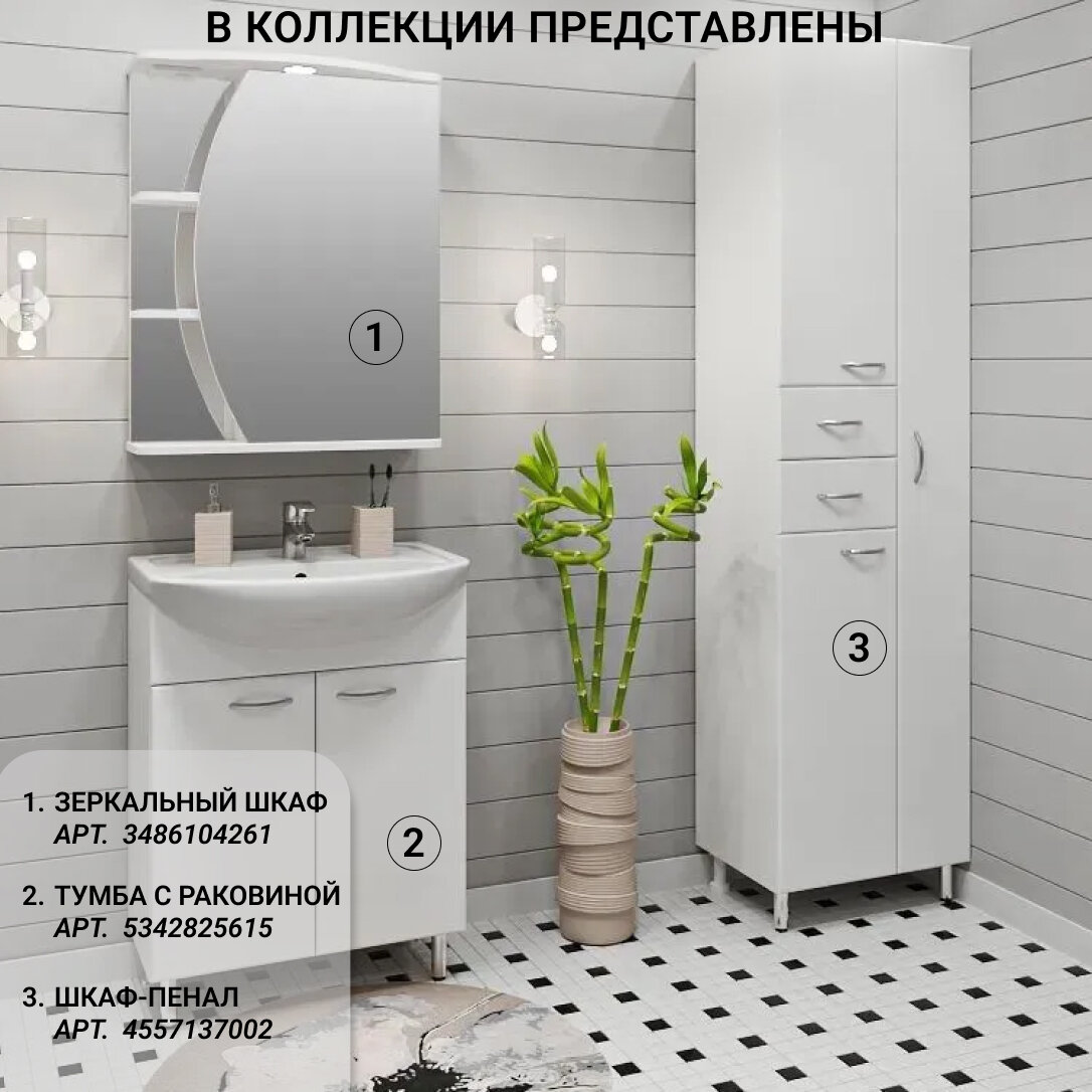 Шкаф в ванную с зеркалом Линда 60, с подсветкой, правый, белый
