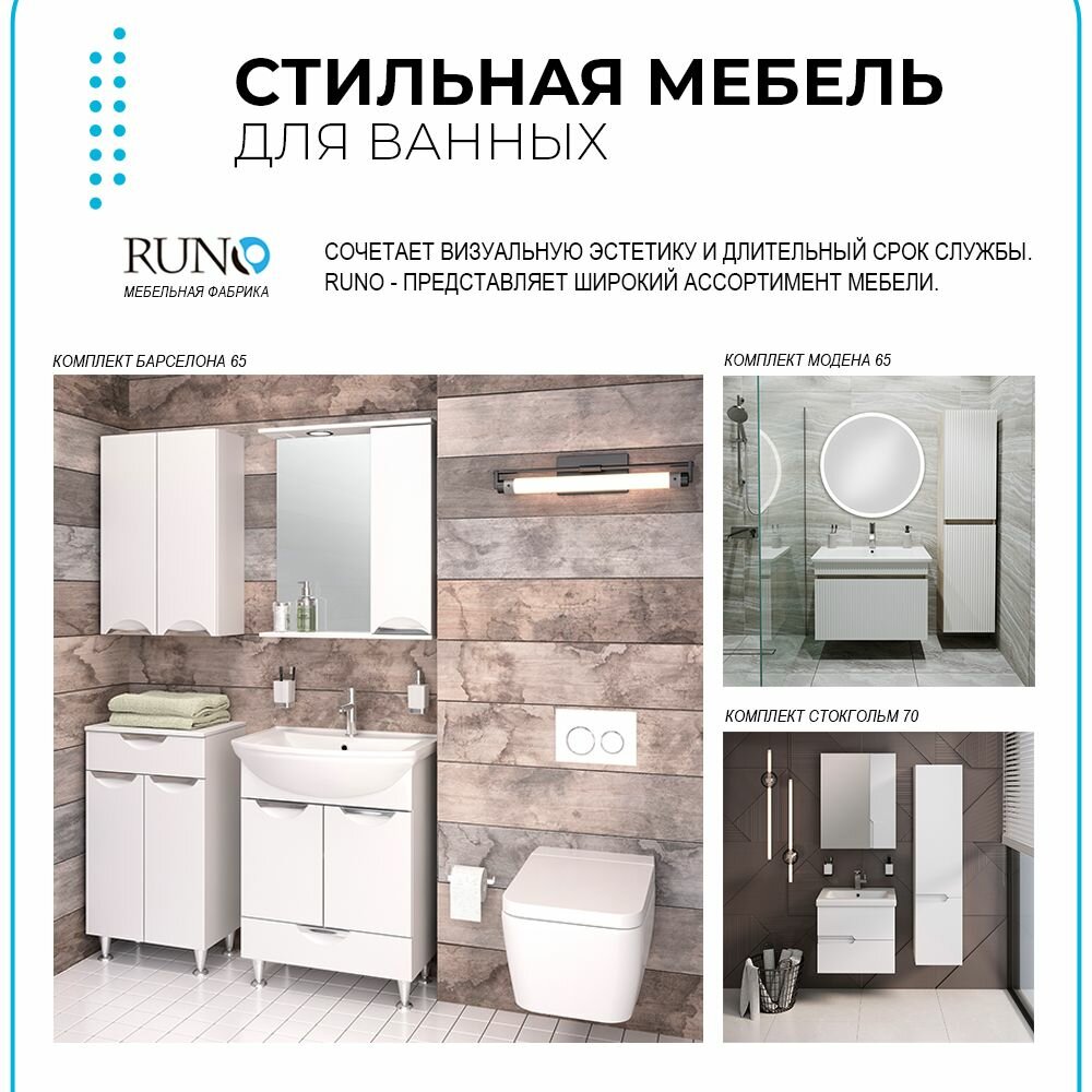 Шкаф в ванную с зеркалом Runo Секрет 65, с подсветкой
