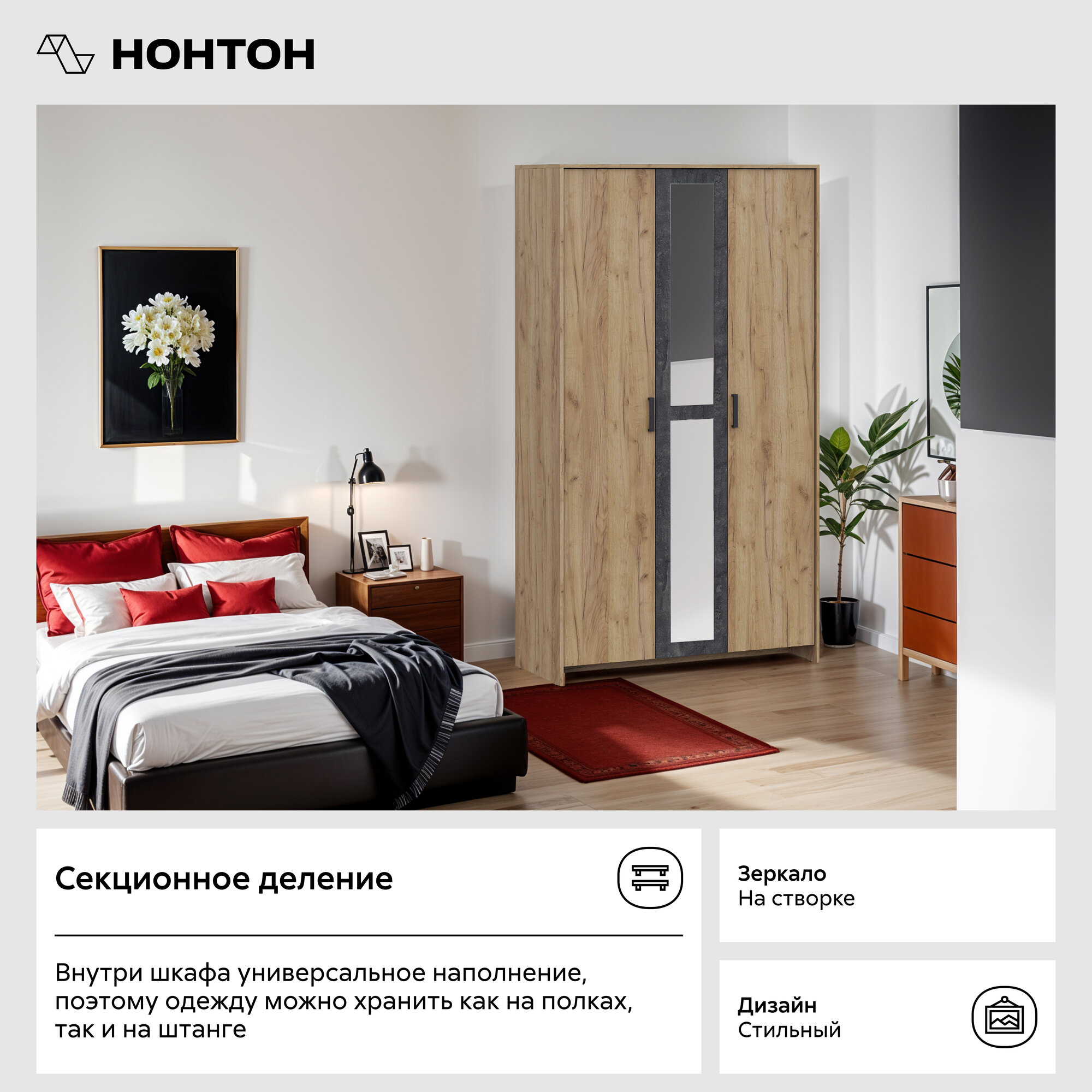 Шкаф для одежды с зеркалом Нонтон Глория, дуб золотой / камень тёмный, 120 см
