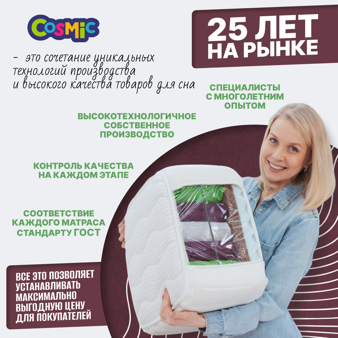Анатомический матрас Cosmic Orbit S600, 90х200, 19 см, с независимыми пружинами, односпальный, для кровати, средней жесткости, не высокий
