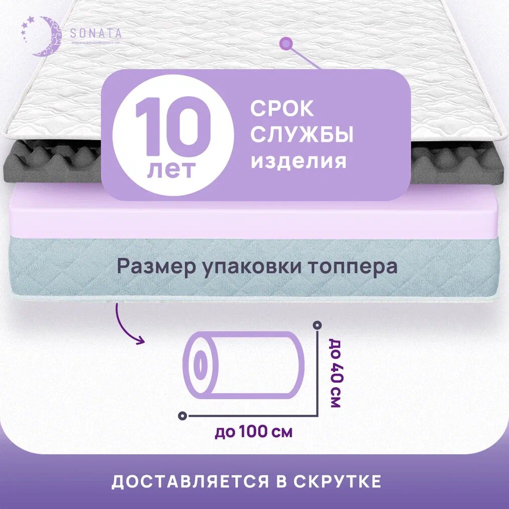 Топпер матрас 160х190 см SONATA, ортопедический, беспружинный, высота 6 см с массажным эффектом