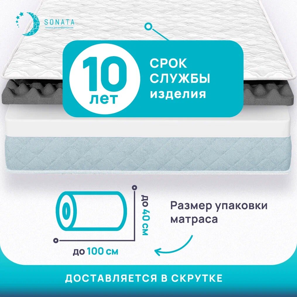 Матрас 90х200 см SONATA, беспружинный, односпальный, матрац для кровати, высота 12см, с массажным эффектом
