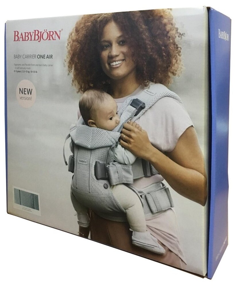 Слинг-эргорюкзак BabyBjorn One Air 3D Mesh для переноски ребенка с рождения и до 3 лет, 3 положения. Серебристый