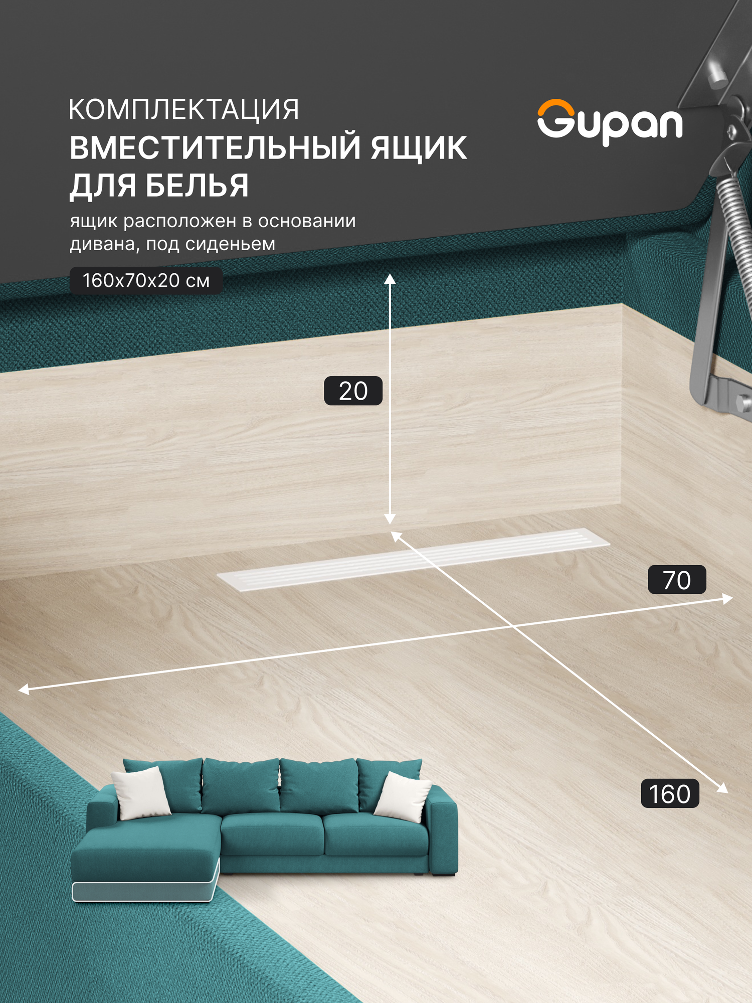 СохранитьДиван угловой Gupan Ланкастер Велюр Amigo Lagoon, раскладной, механизм еврокнижка, беспружинный, с ящиком для белья интересное: