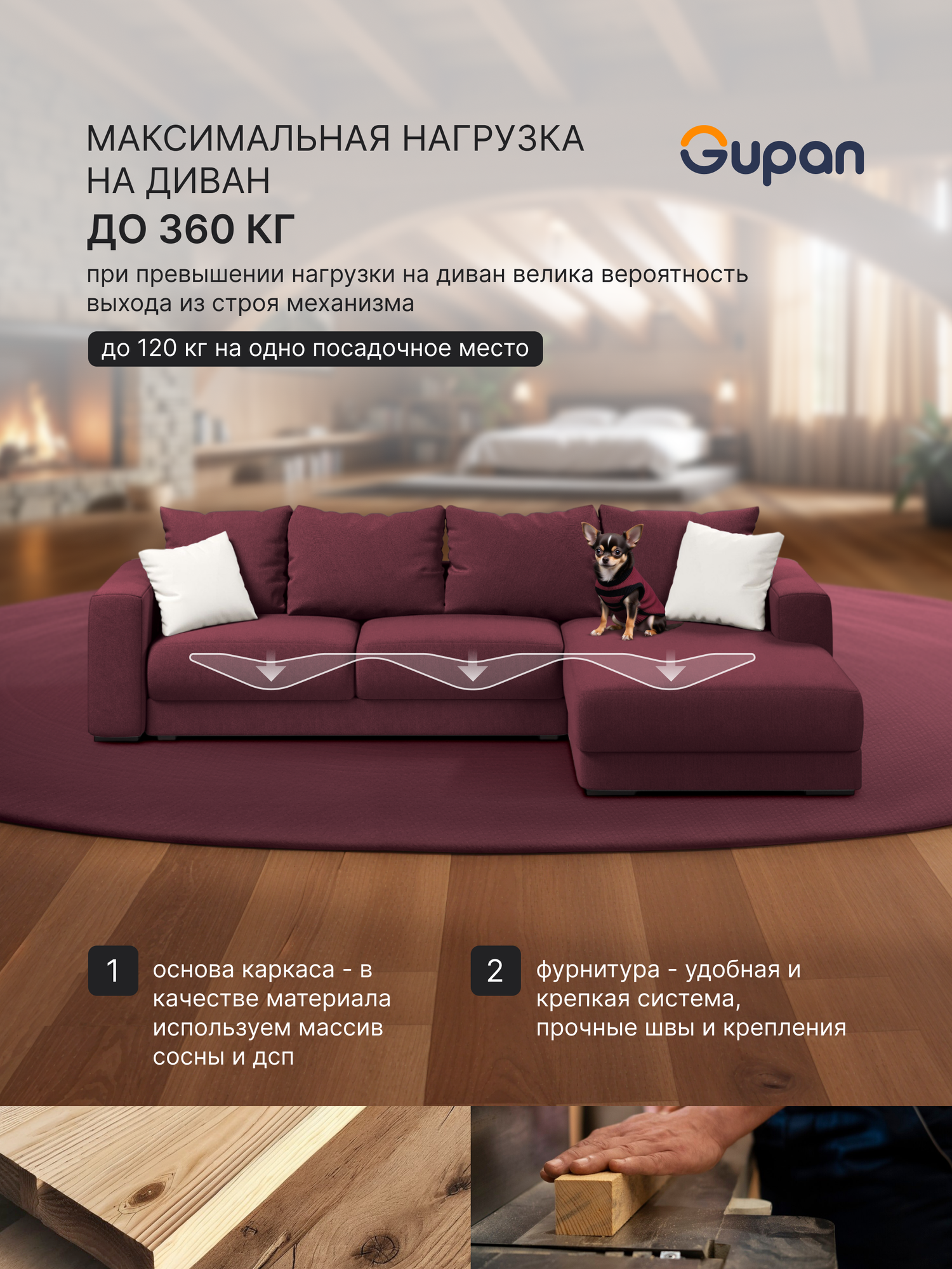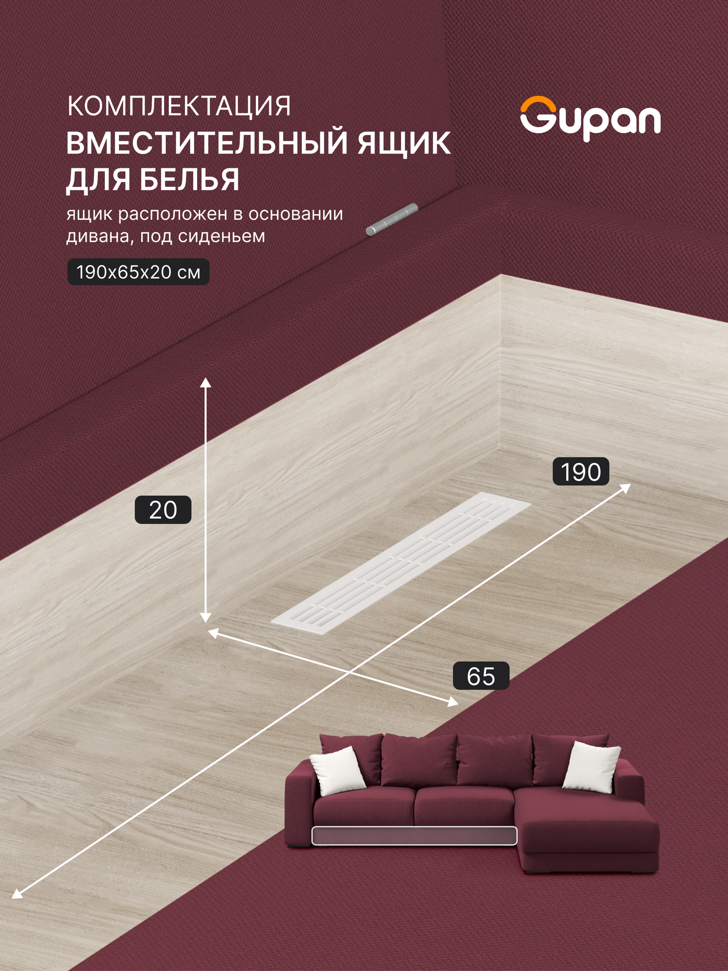 Диван угловой Gupan Ланкастер Велюр Amigo Berry, раскладной, механизм еврокнижка, беспружинный, с ящиком для белья