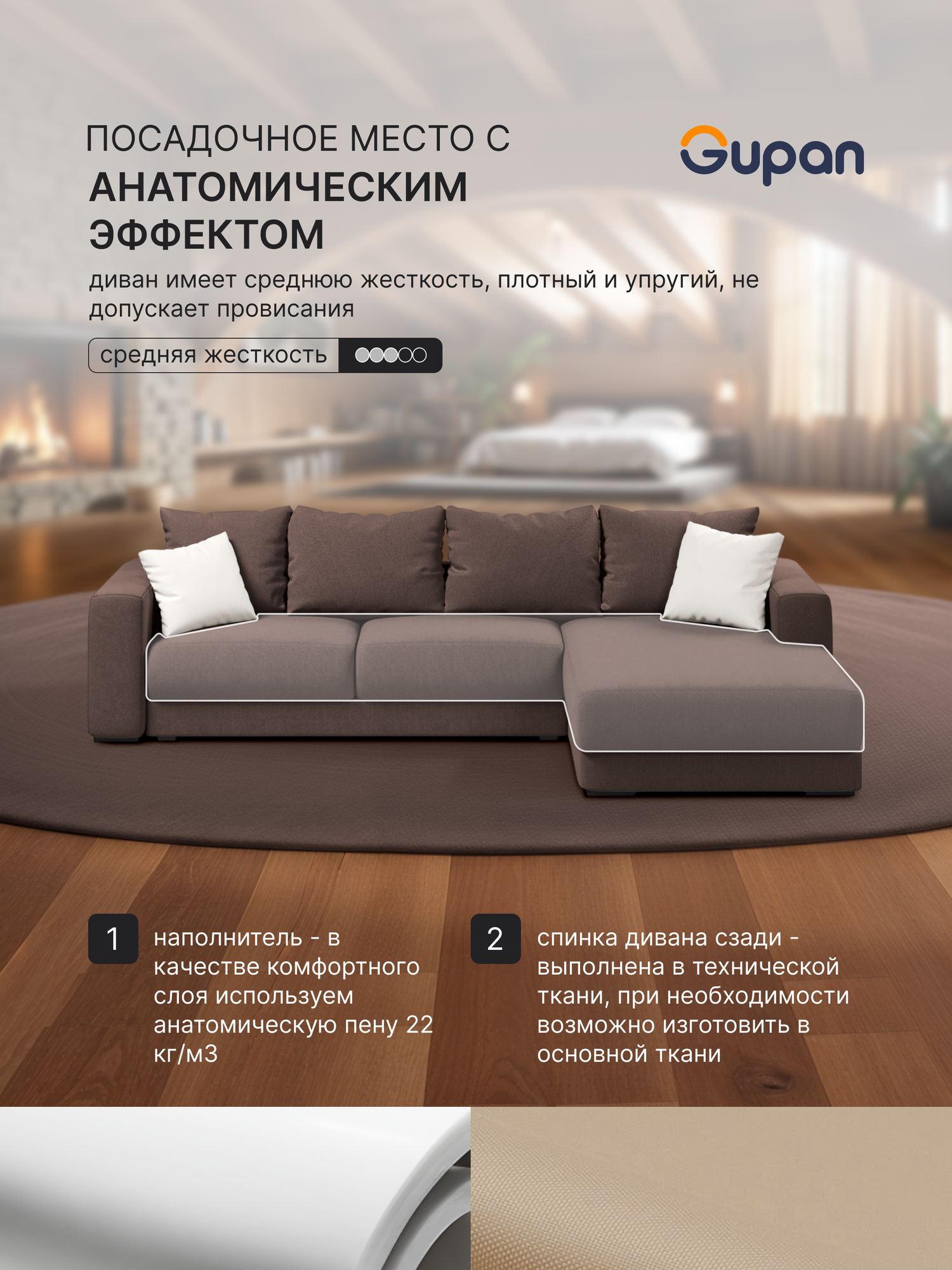 СохранитьДиван угловой Gupan Ланкастер Велюр Amigo Brown, раскладной, механизм еврокнижка, беспружинный, с ящиком для белья интересное: