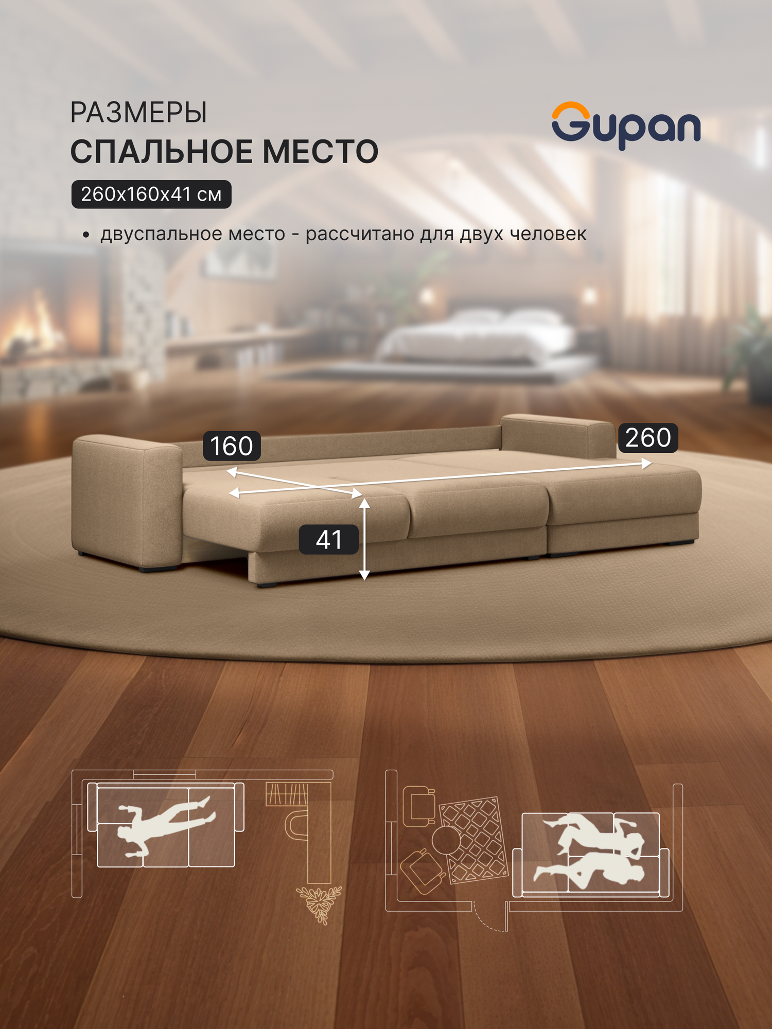 СохранитьДиван угловой Gupan Ланкастер Велюр Amigo Beige, раскладной, механизм еврокнижка, беспружинный, с ящиком для белья интересное: