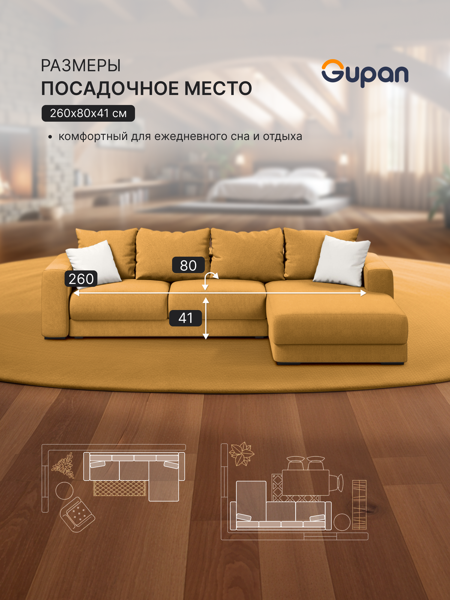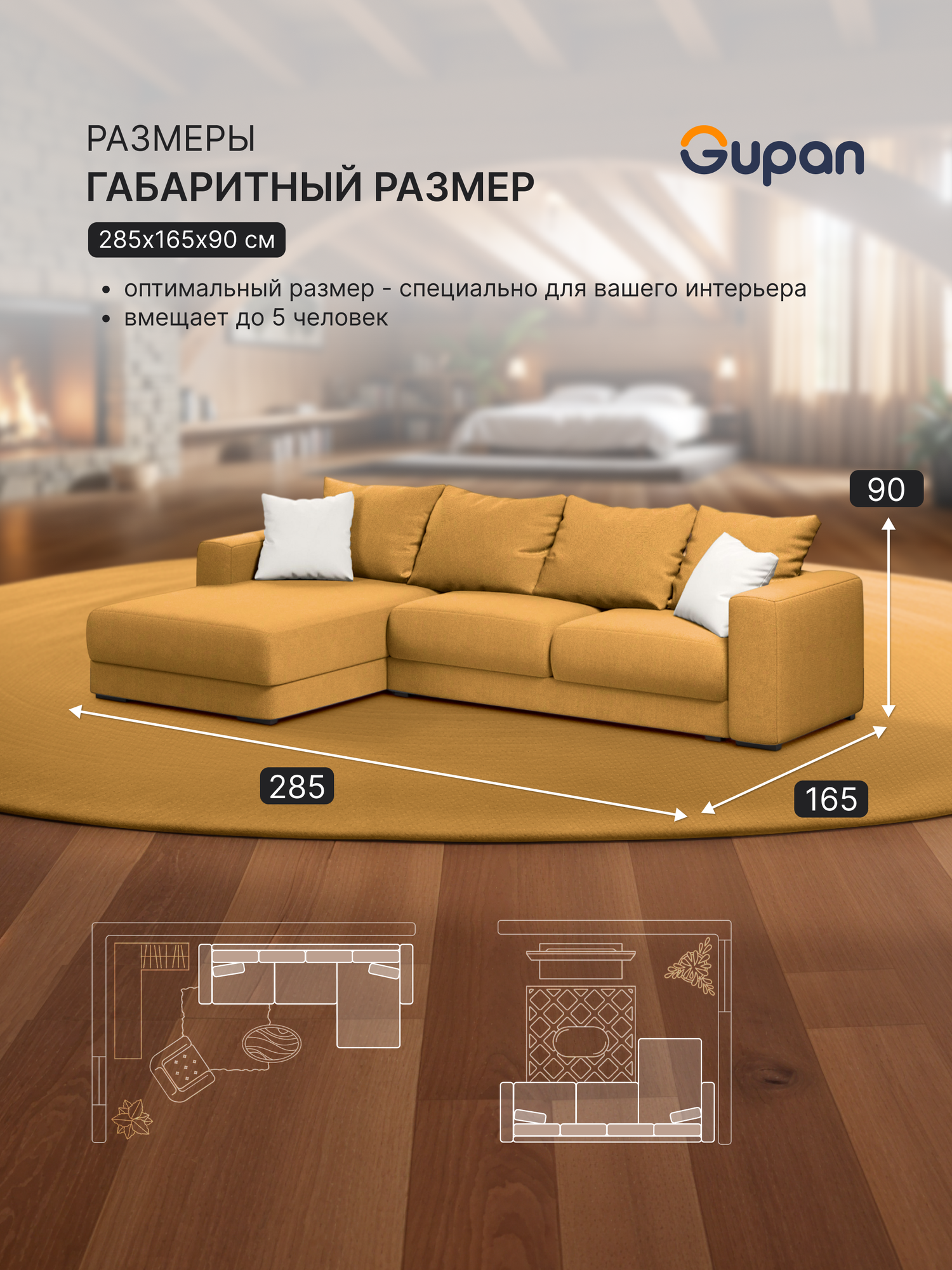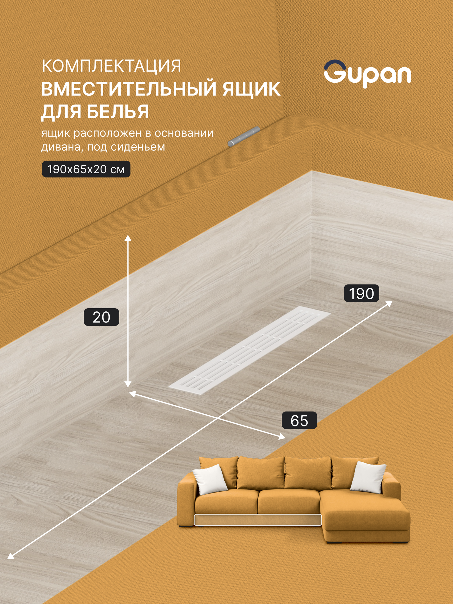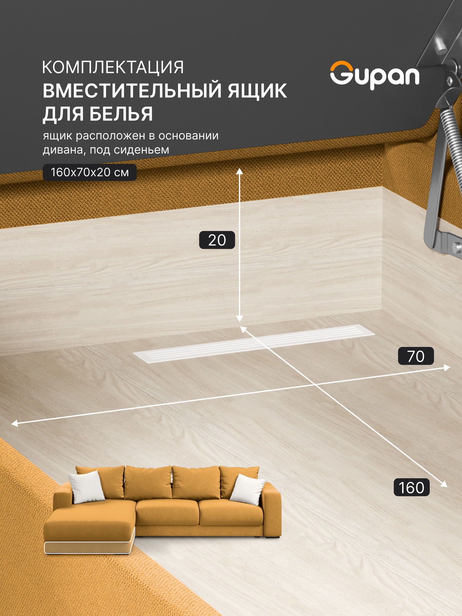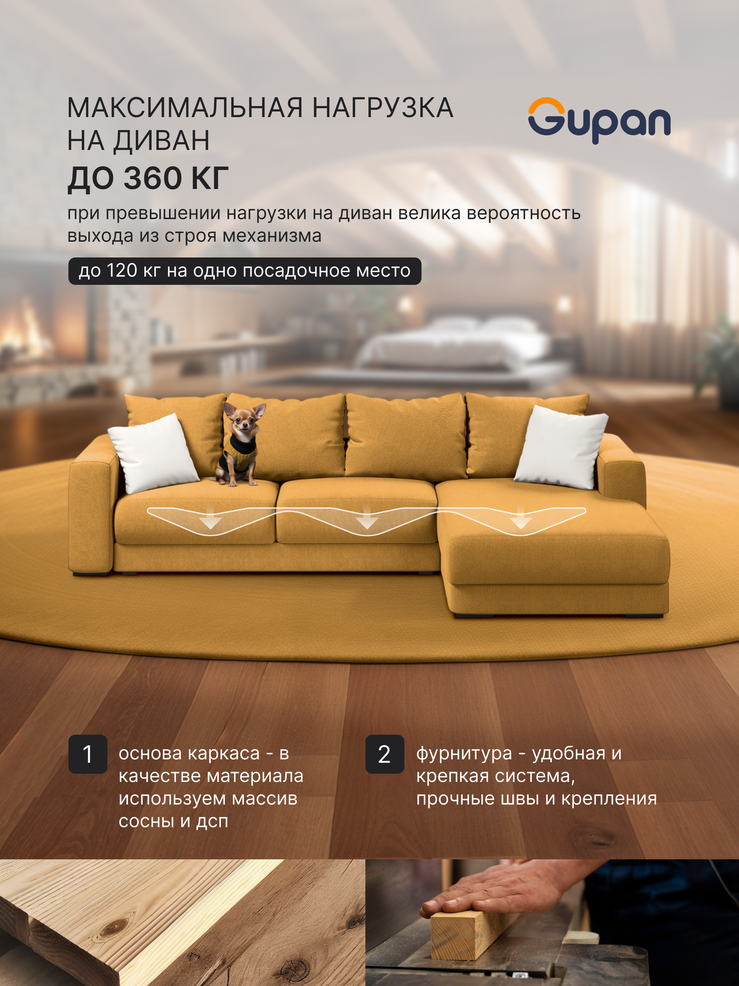 СохранитьДиван угловой Gupan Ланкастер Велюр Amigo Yellow, раскладной, механизм еврокнижка, беспружинный, с ящиком для белья интересное: