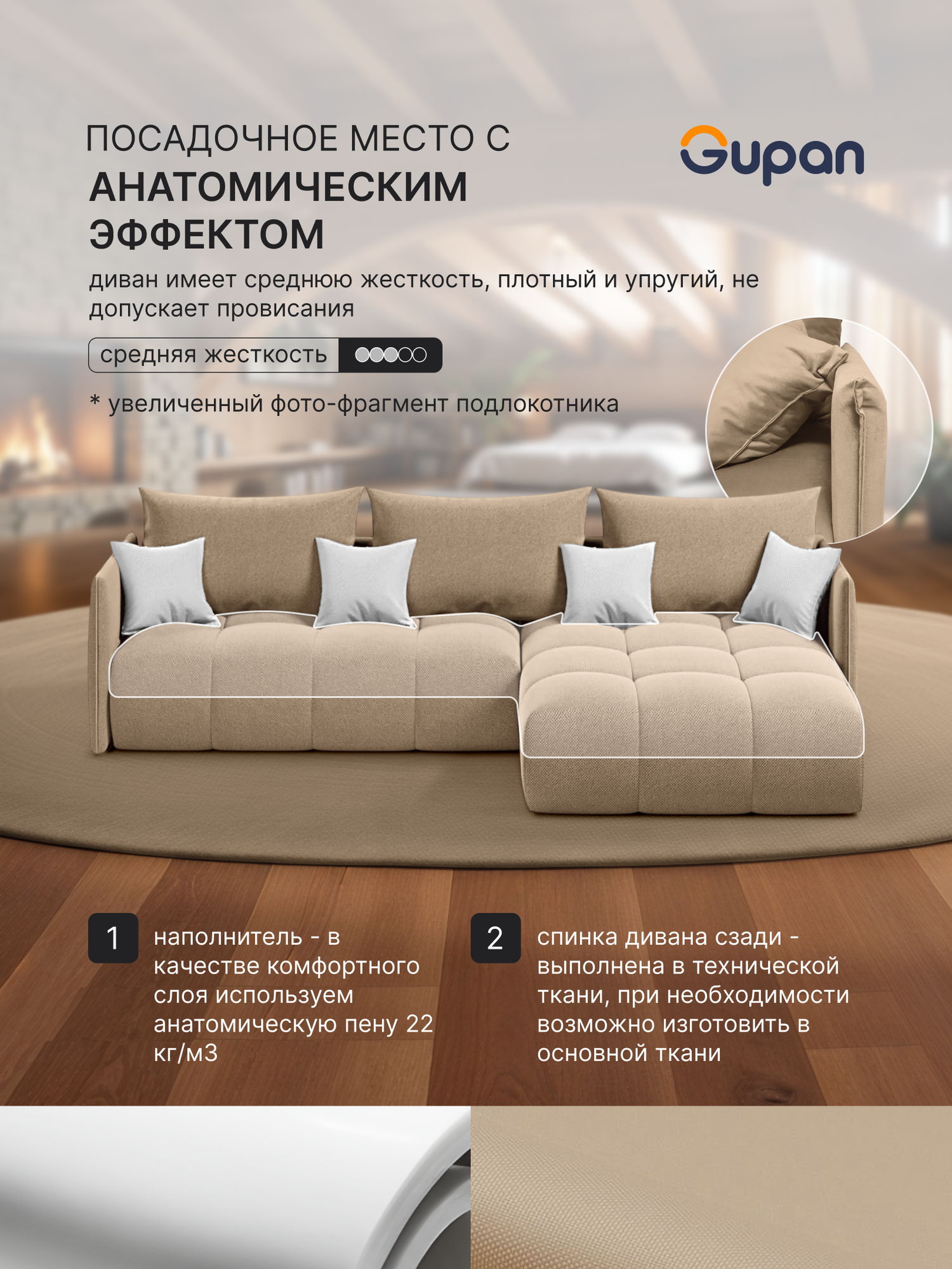 СохранитьДиван угловой Gupan Лагуна Велюр Amigo Beige, раскладной, механизм еврокнижка, беспружинный, с ящиком для белья интересное: