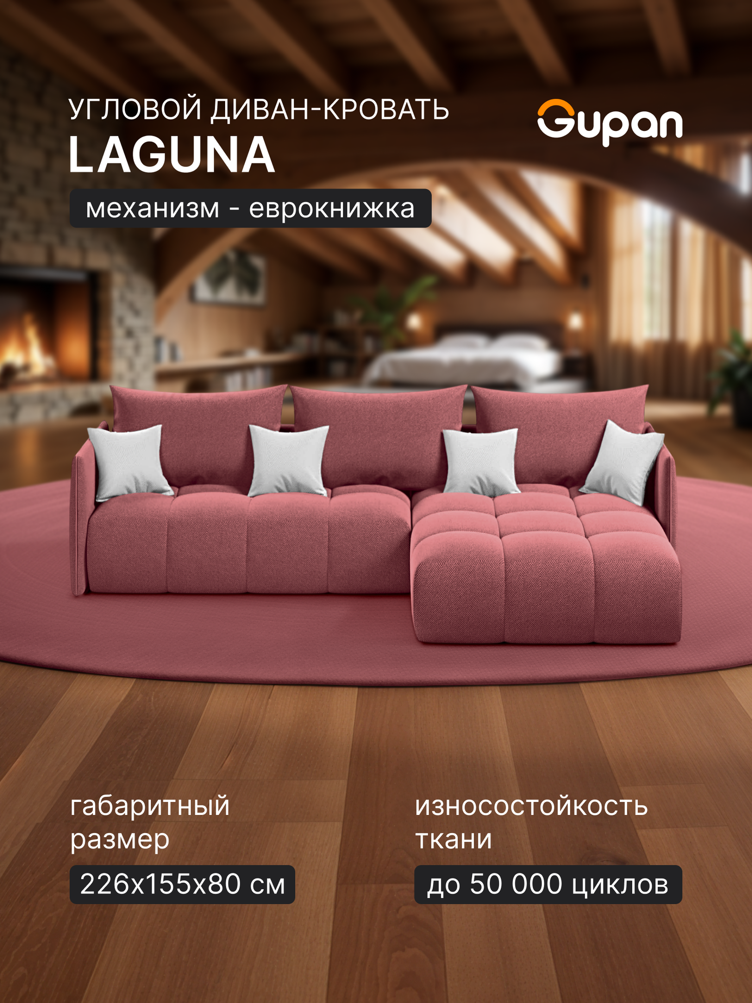 СохранитьДиван угловой Gupan Лагуна Велюр Amigo Berry, раскладной, механизм еврокнижка, беспружинный, с ящиком для белья интересное: