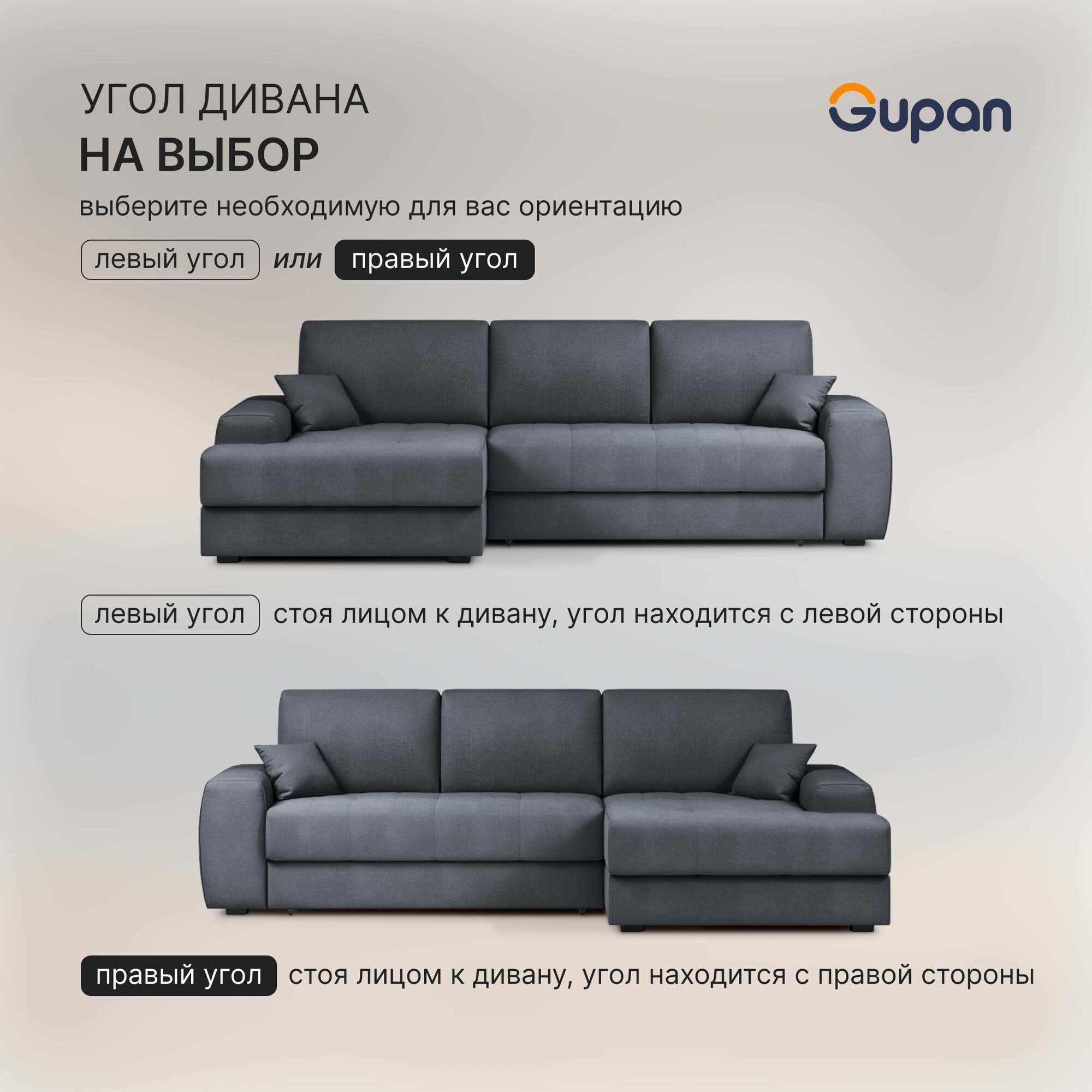 Купить Диван угловой Gupan Элион / Коста Велюр Amigo Grafit, раскладной, механизм еврокнижка, беспружинный, с ящиком для белья