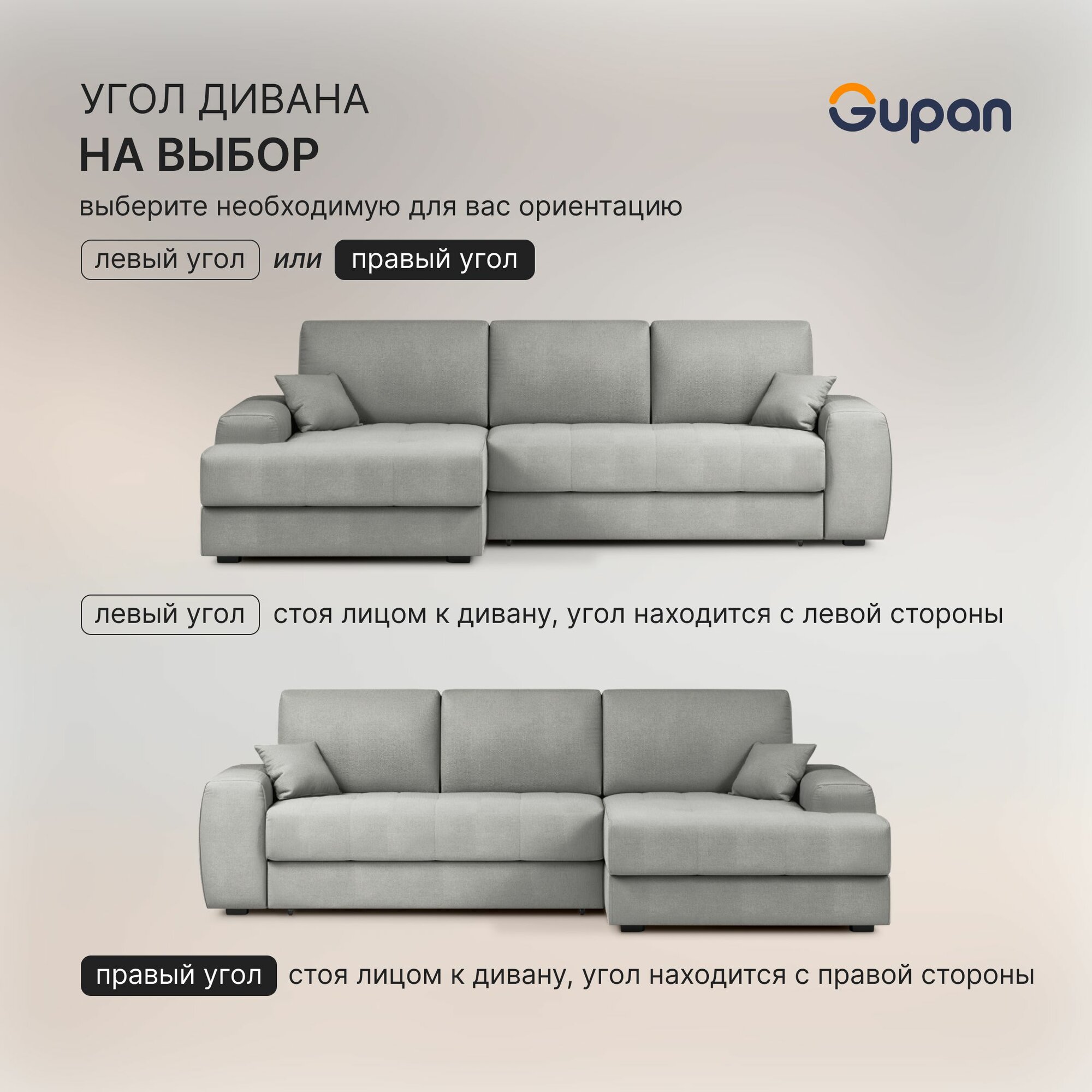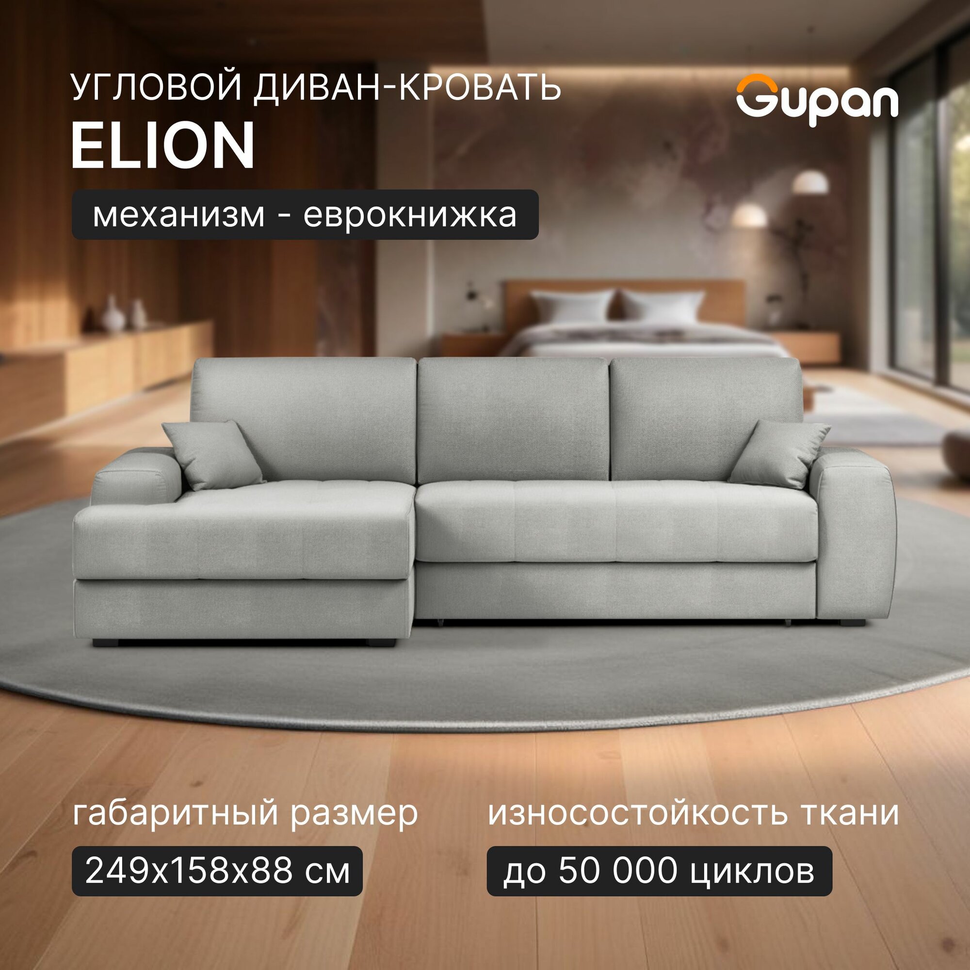 Купить Диван угловой Gupan Элион / Коста Велюр Amigo Ash, раскладной, механизм еврокнижка, беспружинный, с ящиком для белья