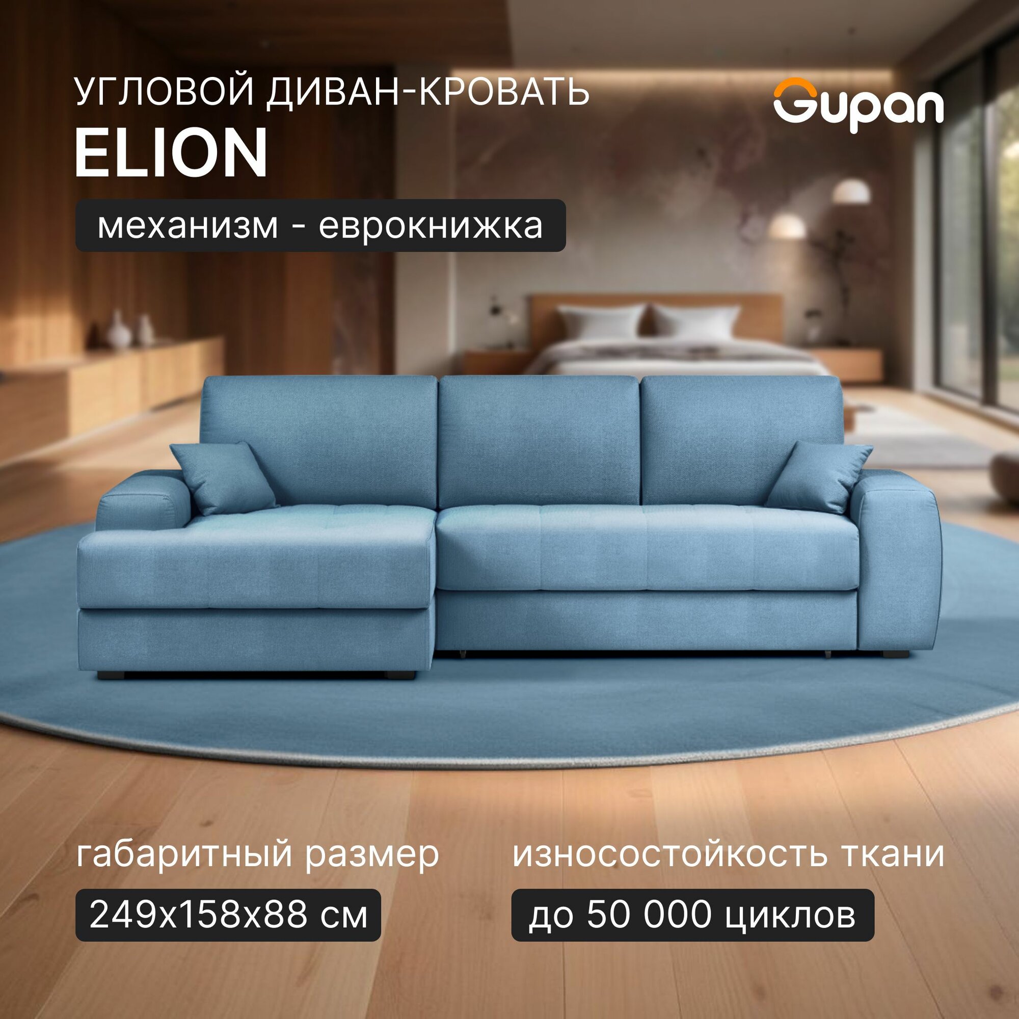 Купить Диван угловой Gupan Элион / Коста Велюр Amigo Blue, раскладной, механизм еврокнижка, беспружинный, с ящиком для белья