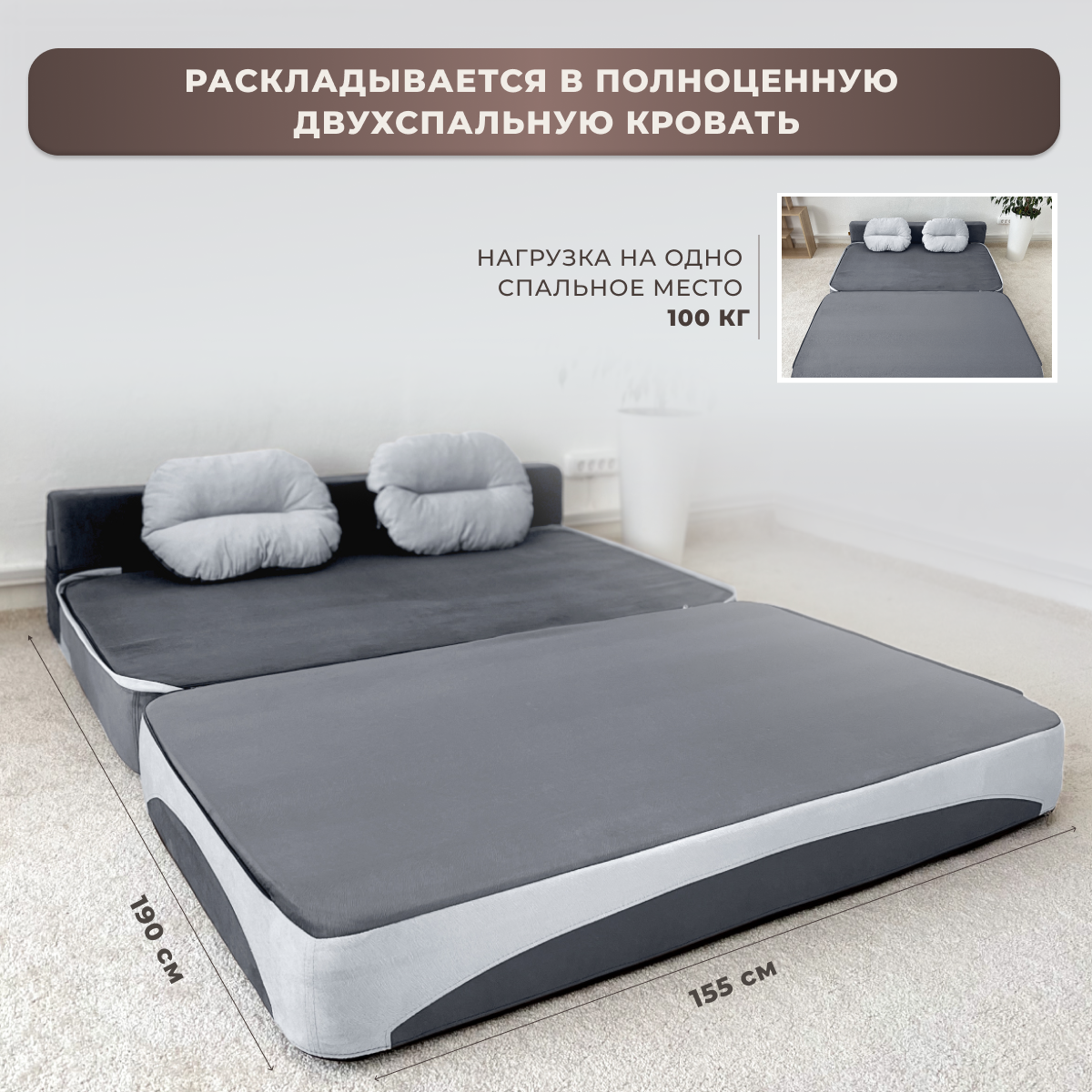 Диван раскладной Мини от Div-one, трансформер, бескаркасный, двухспальный, 155*93 см, спальное место 155*190 см, серый