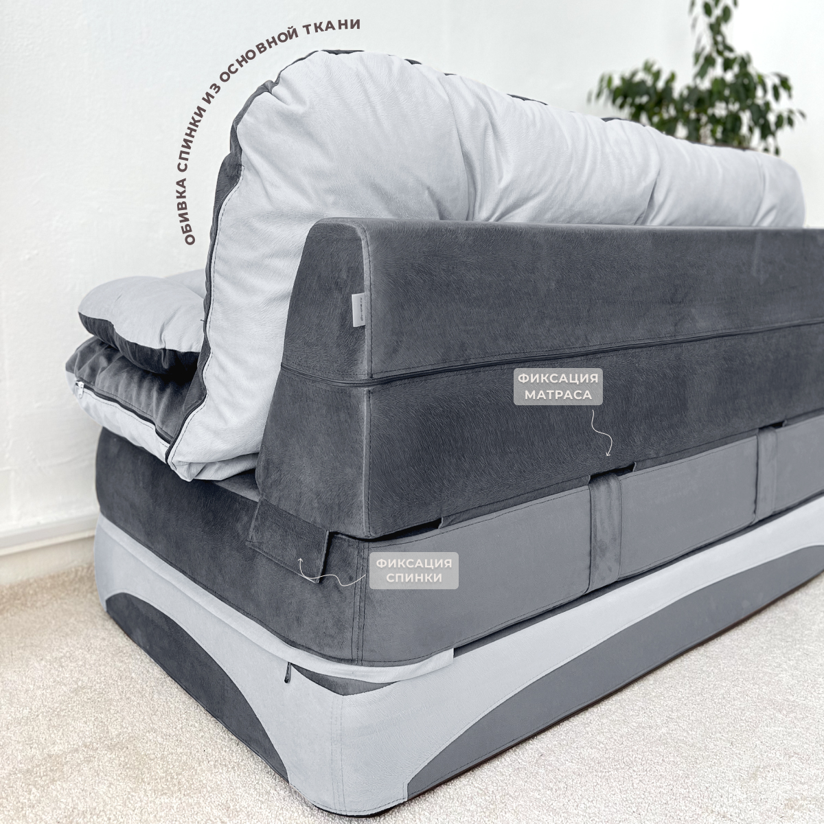 | Особенности | без подлокотников, бескаркасный, раскладная конструкция, съемные подушки, съемный чехол |