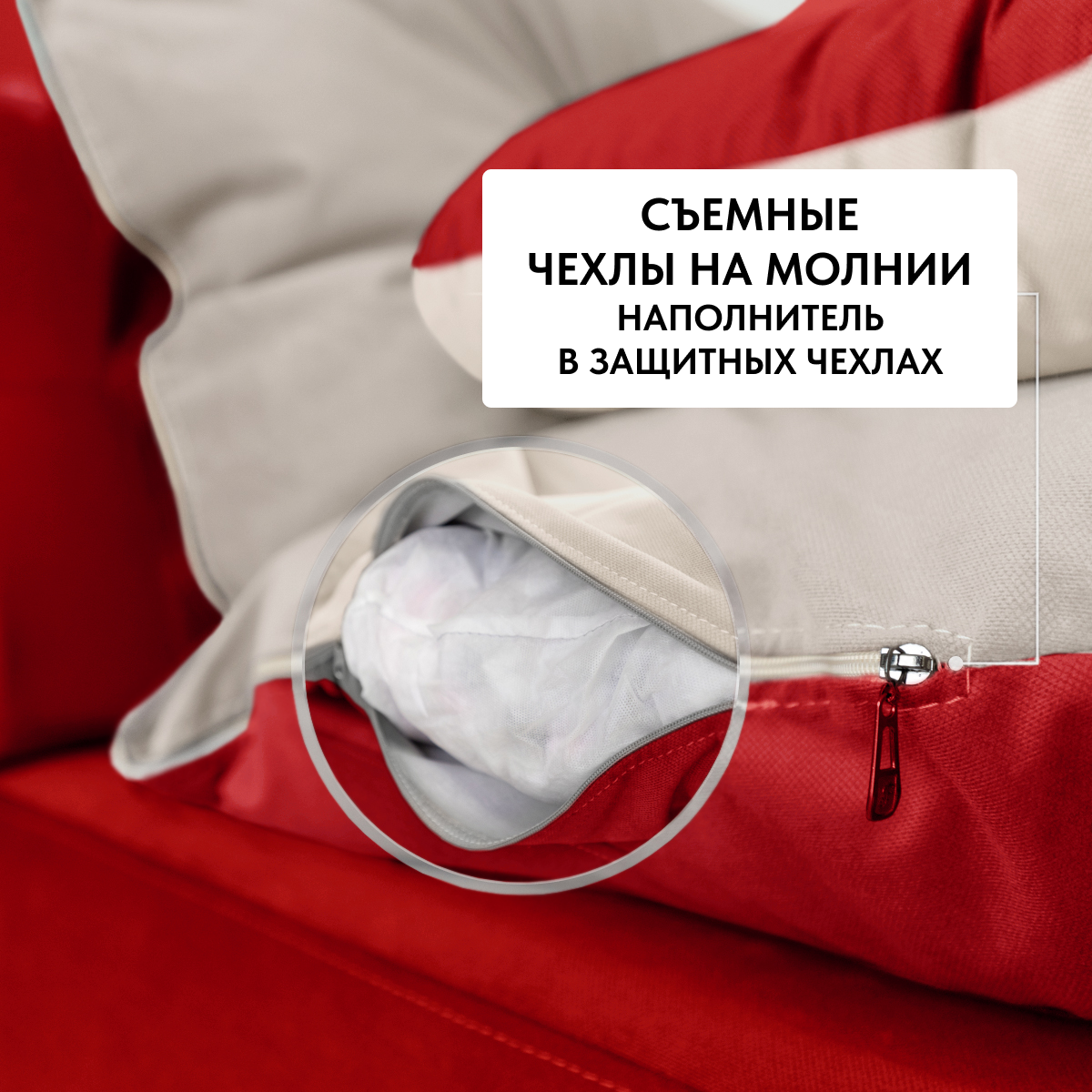 | Особенности | без подлокотников, бескаркасный, раскладная конструкция, съемные подушки, съемный чехол |