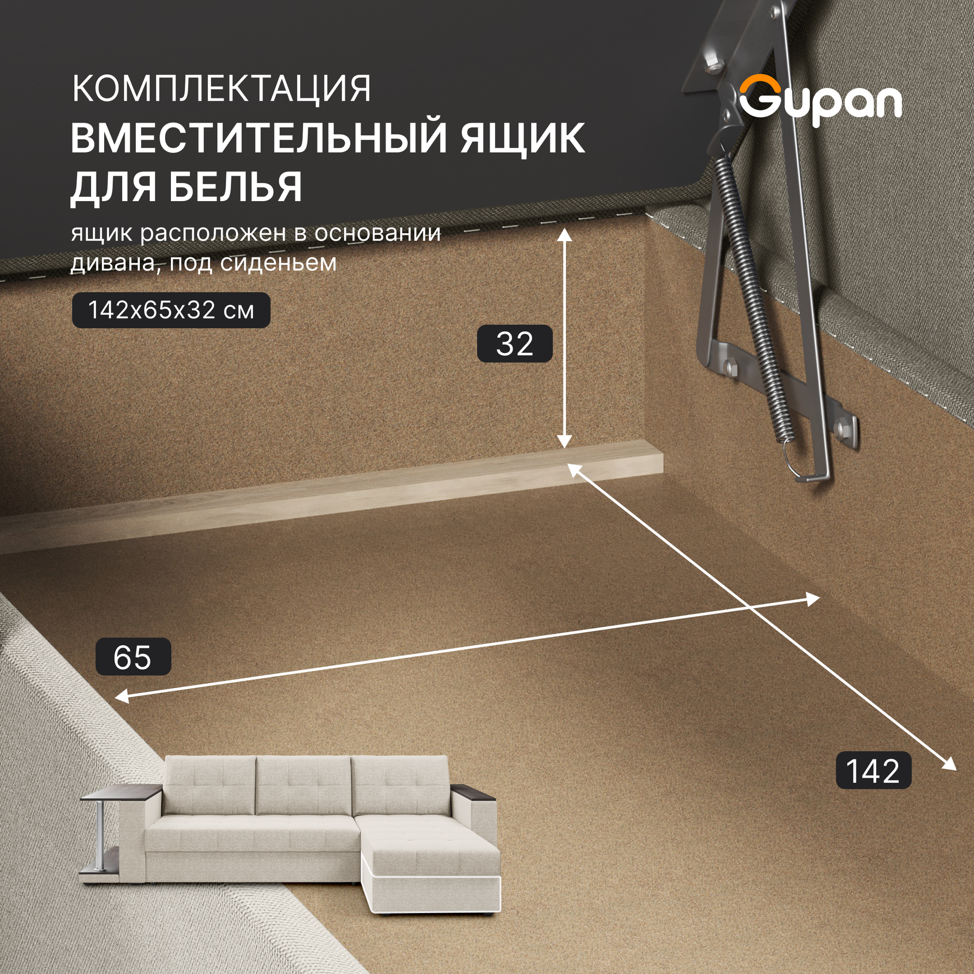 Диван угловой Gupan Атланта Классик Хит / Люкс со столом Рогожка Savana Ivory, раскладной, механизм дельфин, беспружинный, с ящиком для белья