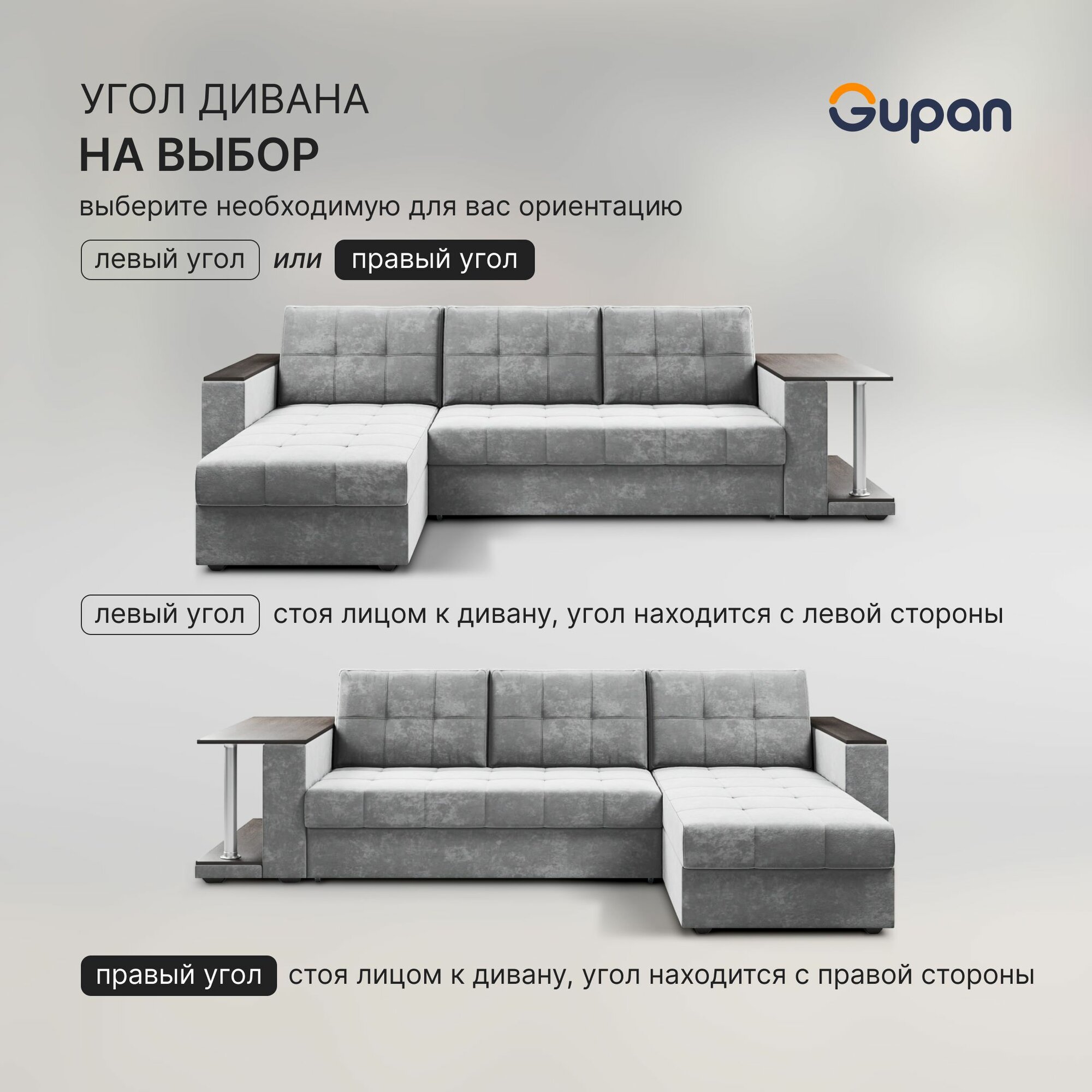 Диван угловой Gupan Атланта Классик Хит / Люкс со столом Велюр Bingo Pebble, раскладной, механизм дельфин, беспружинный, с ящиком для белья