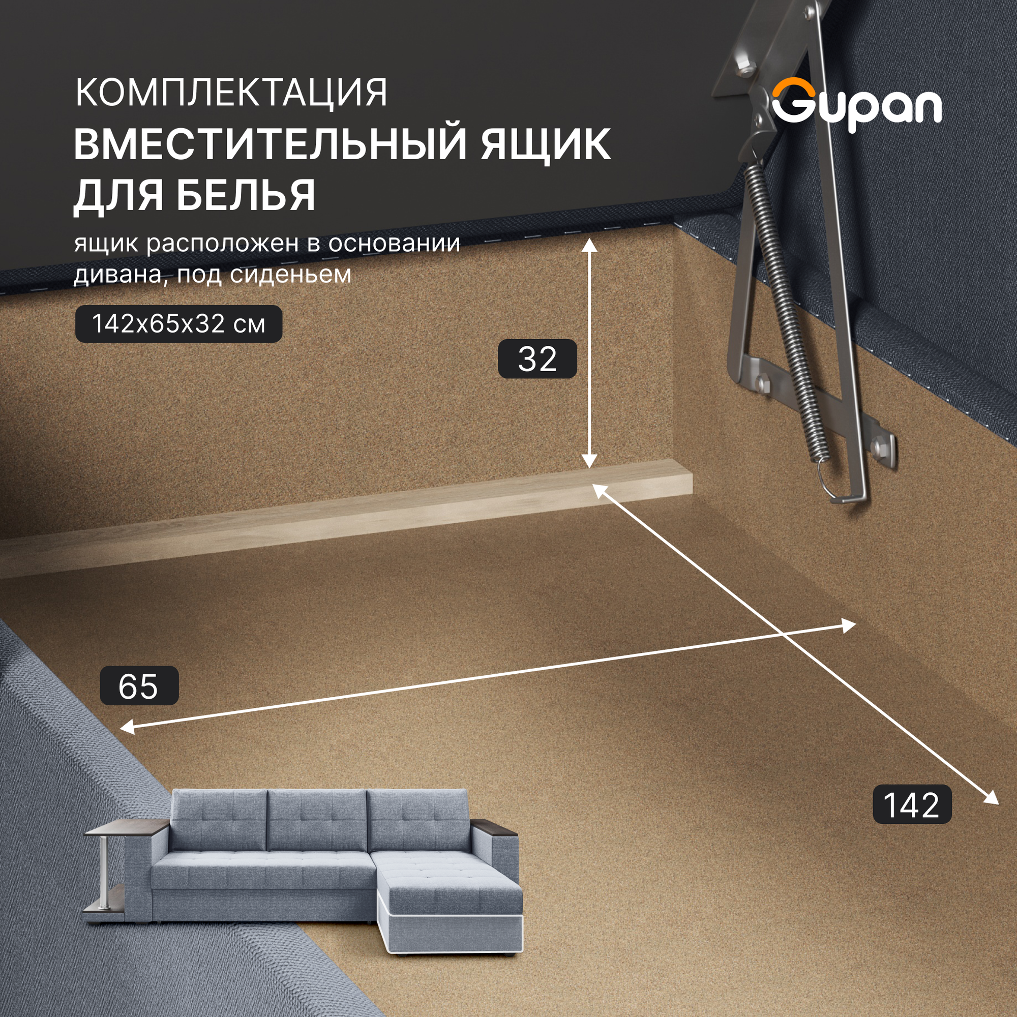 Диван угловой Gupan Атланта Классик Хит / Люкс со столом Рогожка Savana Ash, раскладной, механизм дельфин, беспружинный, с ящиком для белья