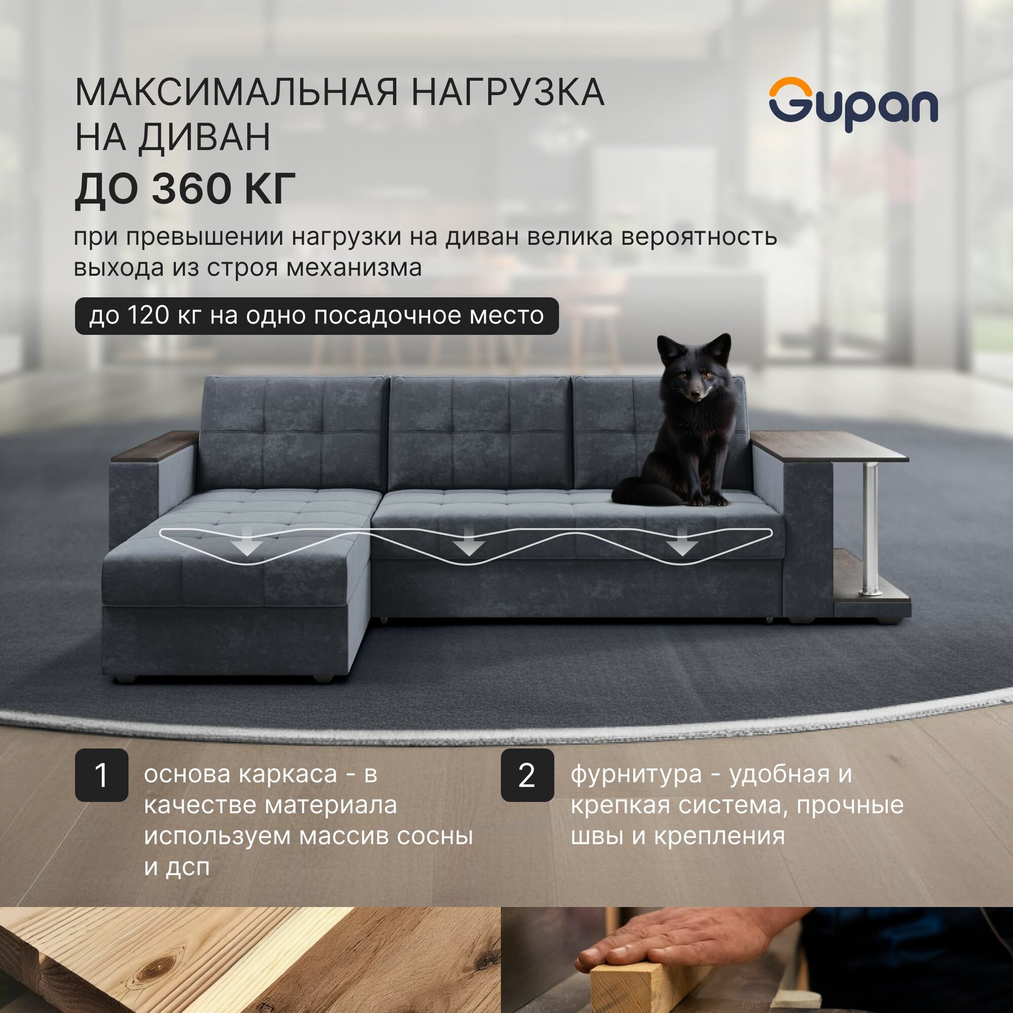Диван угловой Gupan Атланта Классик Хит / Люкс со столом Рогожка Savana Mouse, раскладной, механизм дельфин, беспружинный, с ящиком для белья