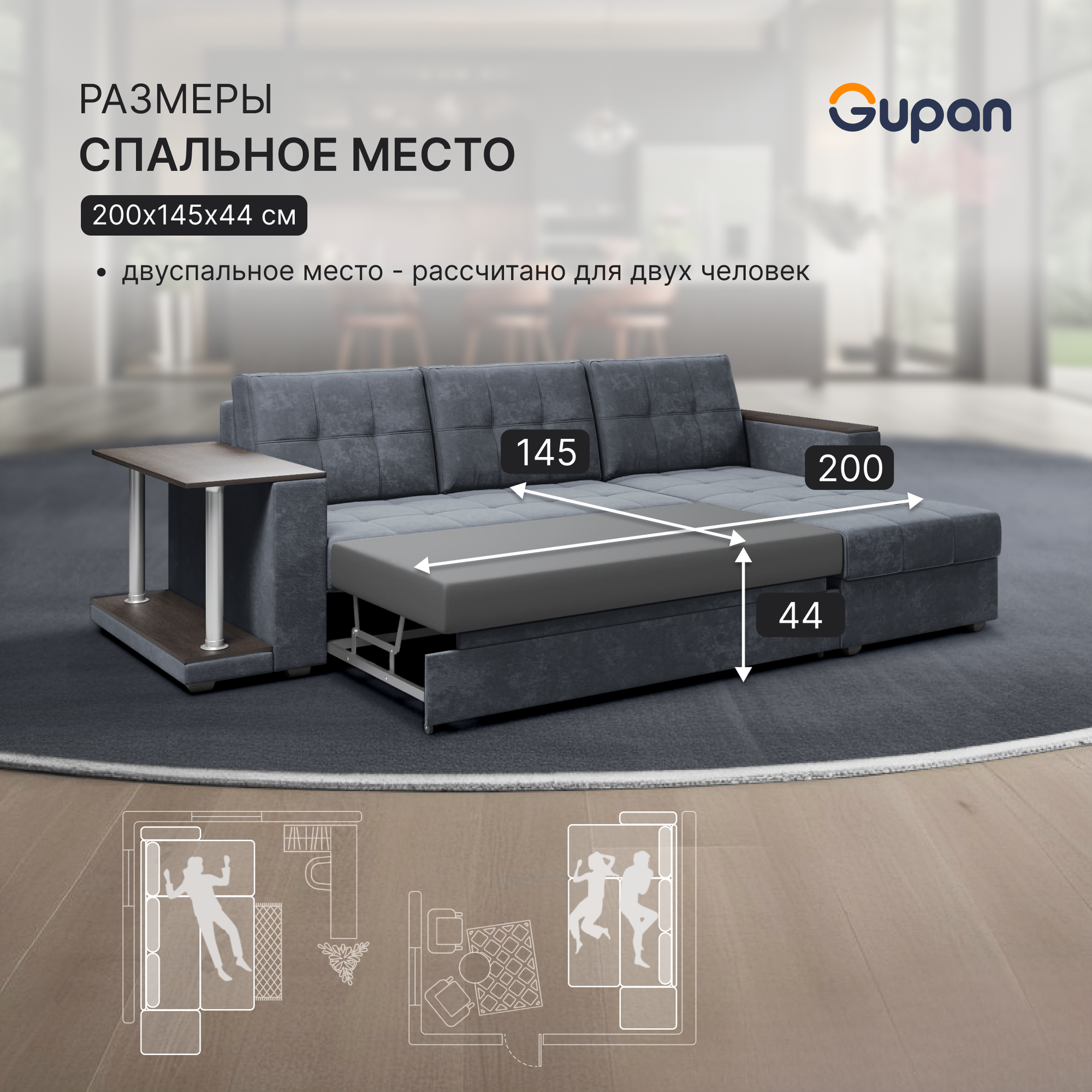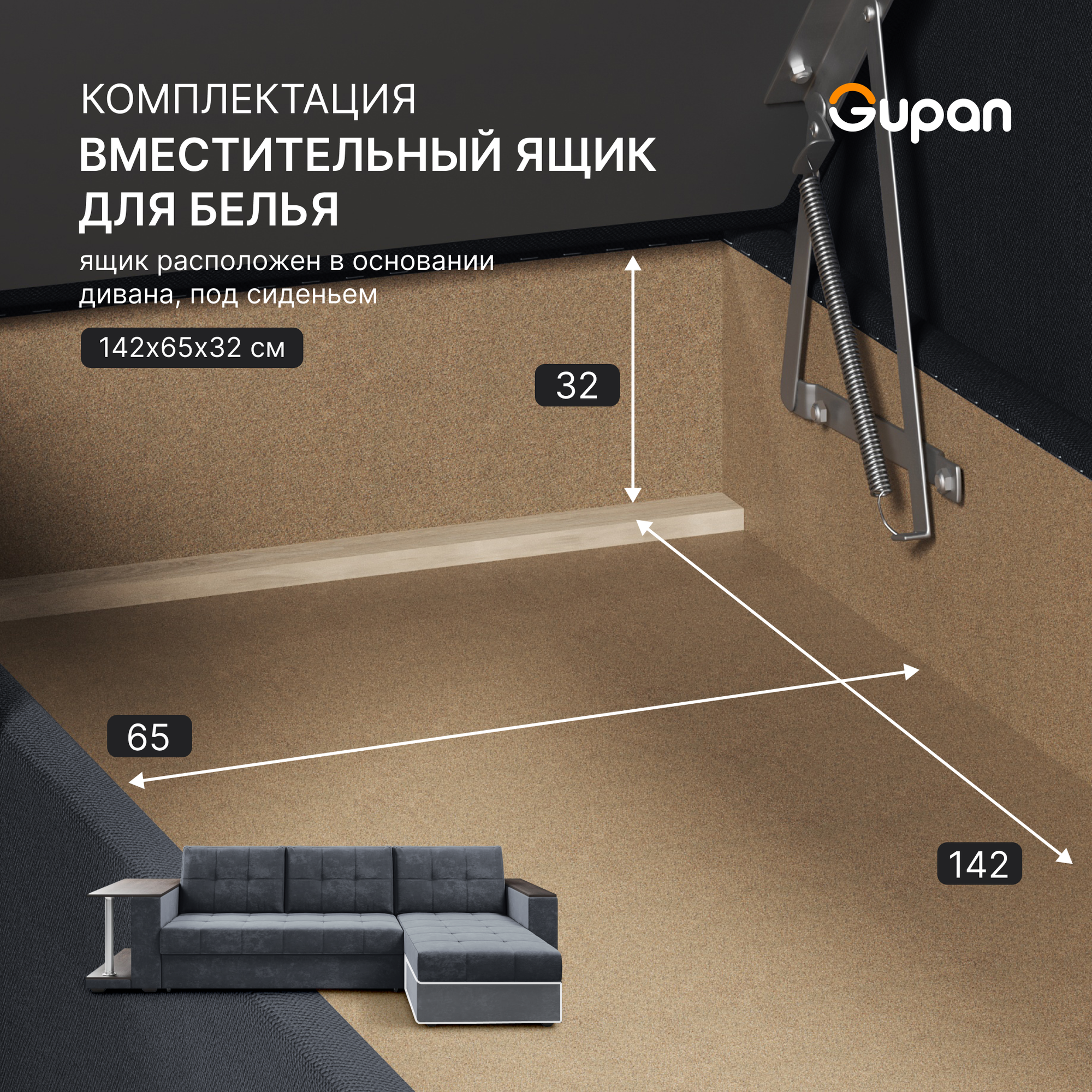 Диван угловой Gupan Атланта Классик Хит / Люкс со столом Велюр Bingo Slate, раскладной, механизм дельфин, беспружинный, с ящиком для белья