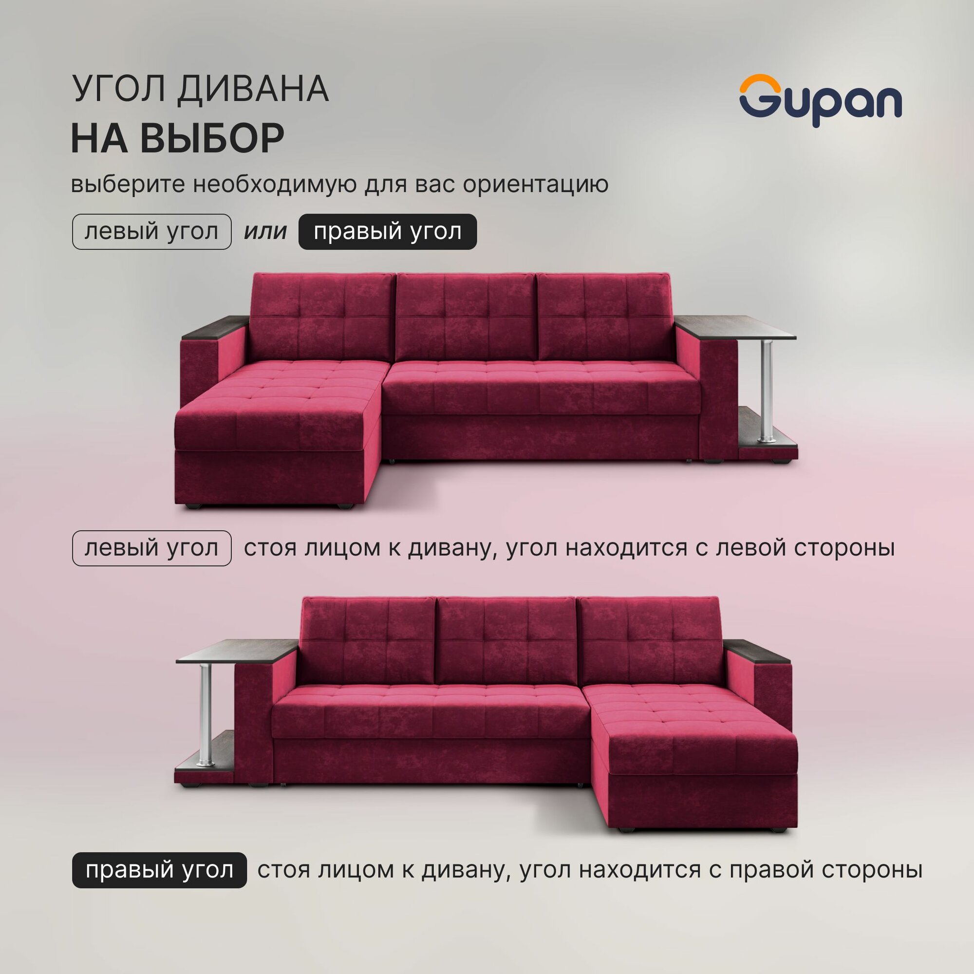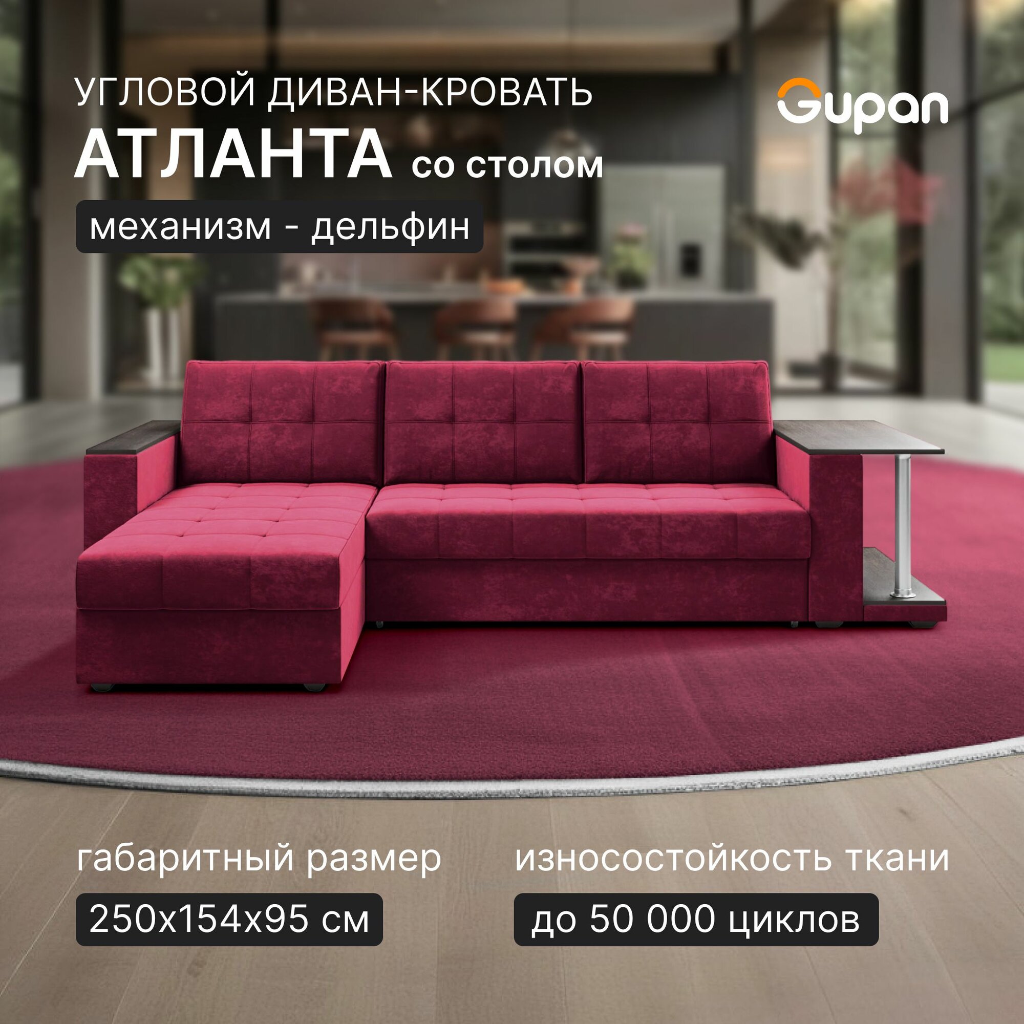 Диван угловой Gupan Атланта Классик Хит / Люкс со столом Велюр Bingo Berry, раскладной, механизм дельфин, беспружинный, с ящиком для белья