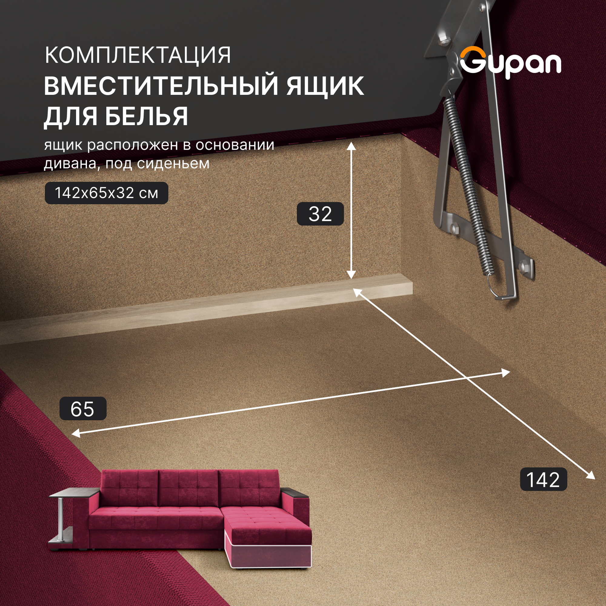 Диван угловой Gupan Атланта Классик Хит / Люкс со столом Рогожка Savana Berry, раскладной, механизм дельфин, беспружинный, с ящиком для белья