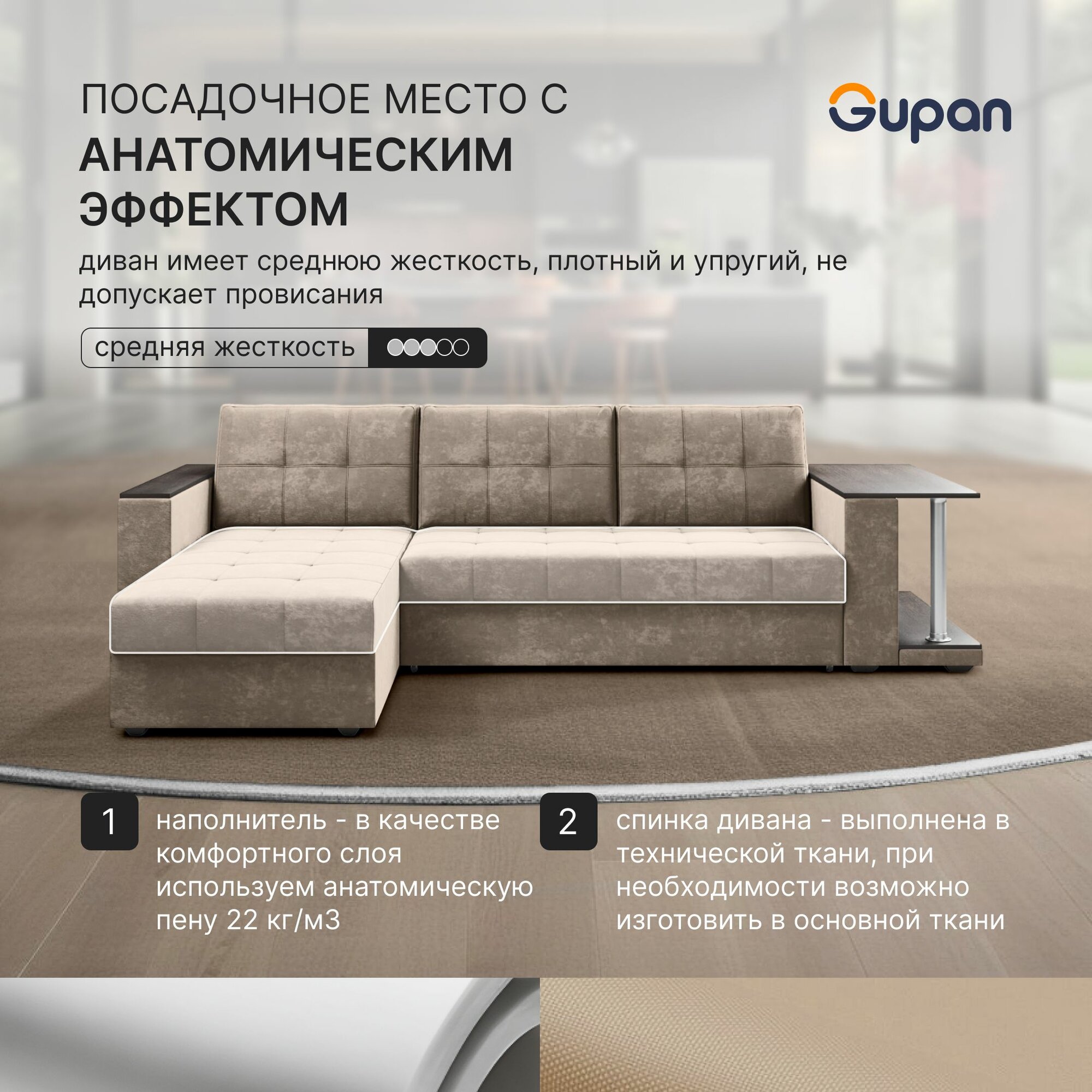 СохранитьДиван угловой Gupan Атланта Классик Хит / Люкс со столом Велюр Bingo Sand, раскладной, механизм дельфин, беспружинный, с ящиком для белья интересное: