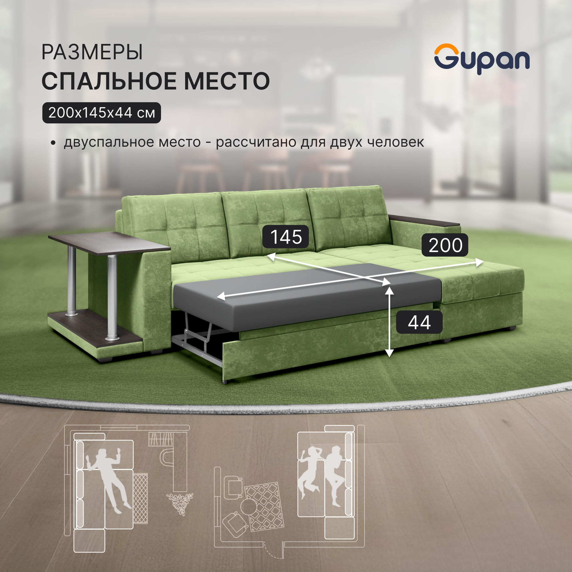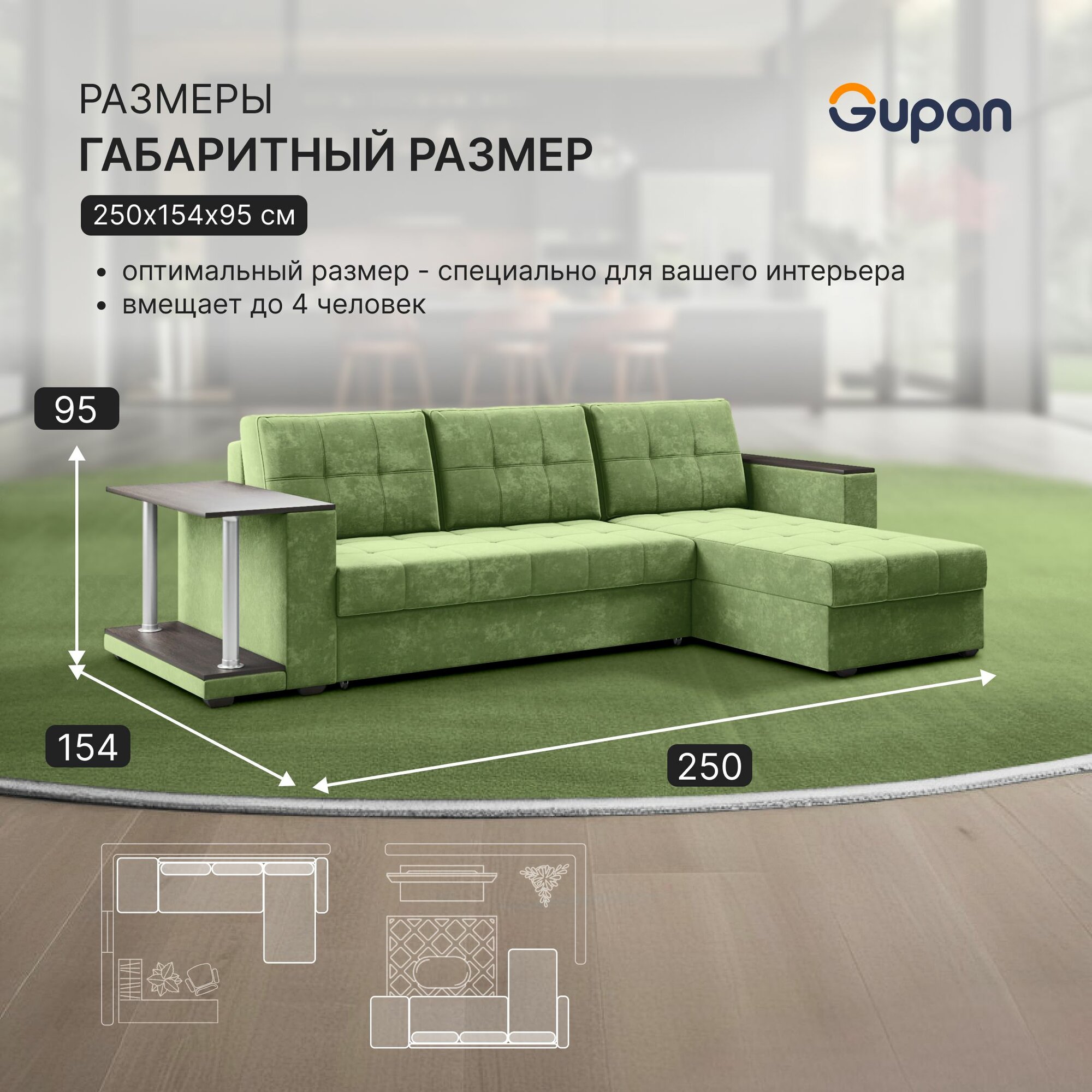 Диван угловой Gupan Атланта Классик Хит / Люкс со столом Велюр Bingo Green, раскладной, механизм дельфин, беспружинный, с ящиком для белья