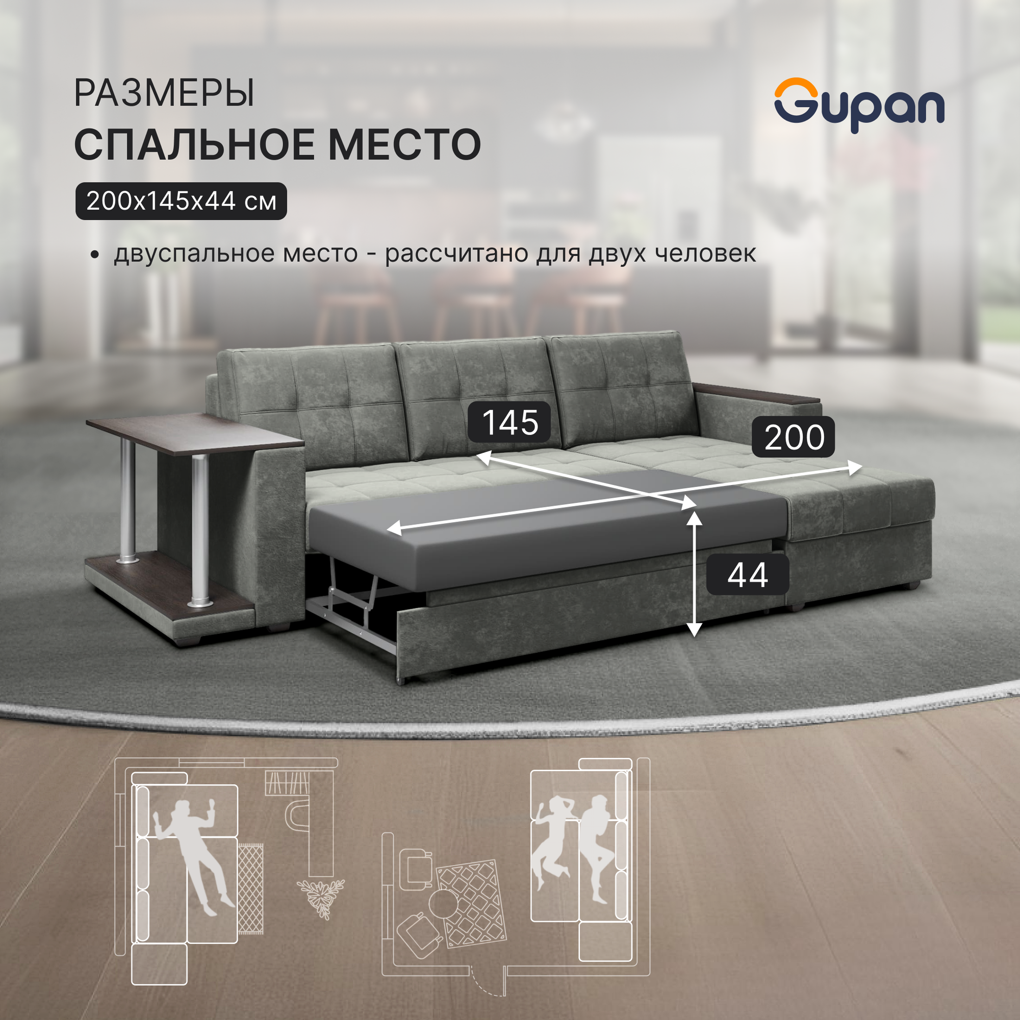 Диван угловой Gupan Атланта Классик Хит / Люкс со столом Рогожка Savana Mouse, раскладной, механизм дельфин, беспружинный, с ящиком для белья