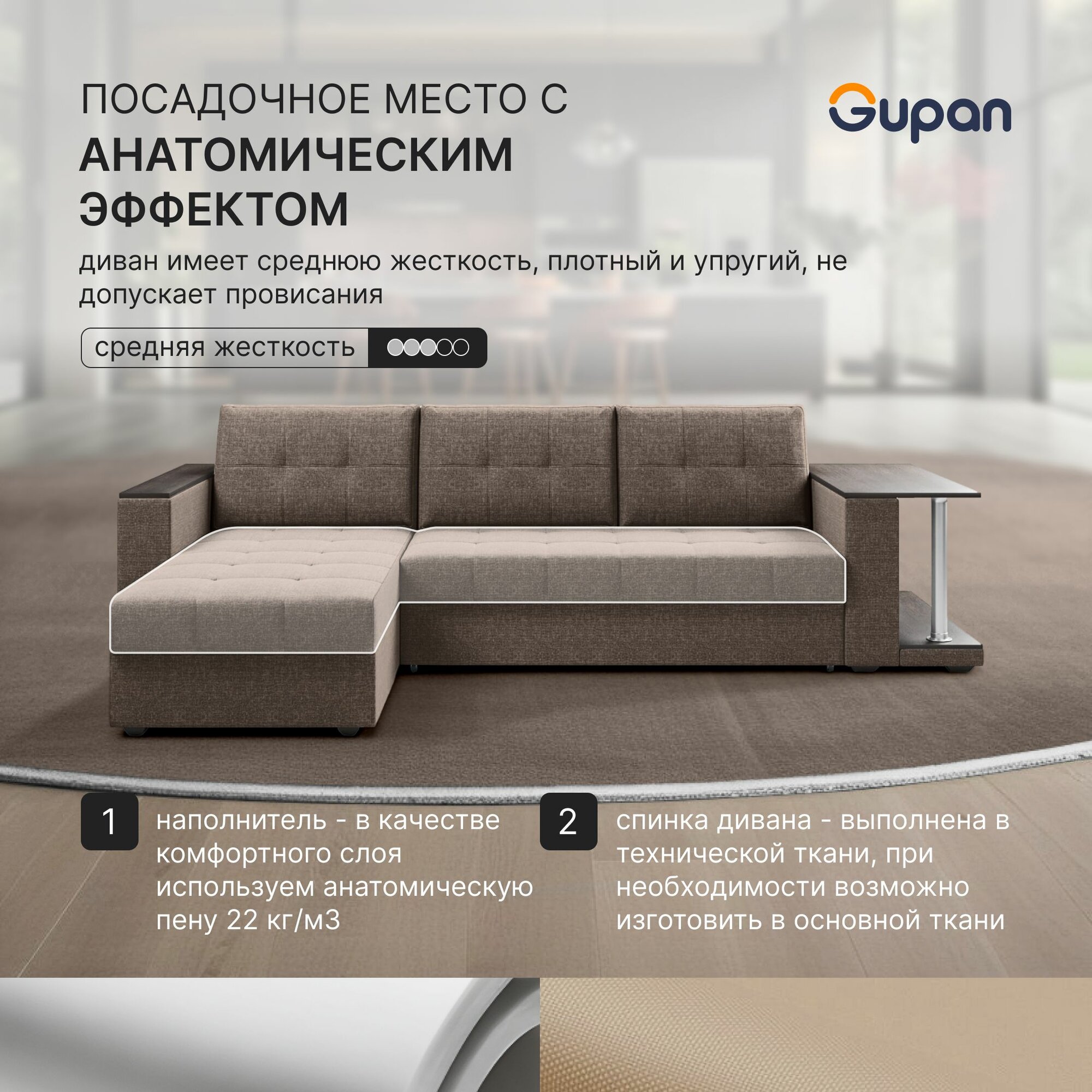 Диван угловой Gupan Атланта Классик Хит / Люкс со столом Рогожка Savana Toffee, раскладной, механизм дельфин, беспружинный, с ящиком для белья