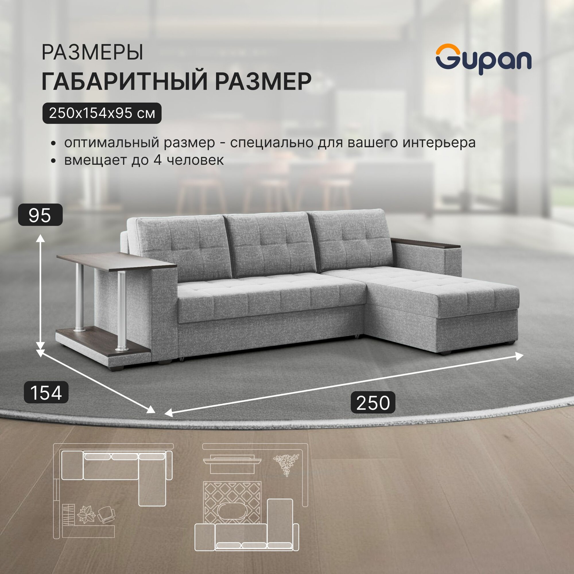СохранитьДиван угловой Gupan Атланта Классик Хит / Люкс со столом Рогожка Savana Ash, раскладной, механизм дельфин, беспружинный, с ящиком для белья интересное: