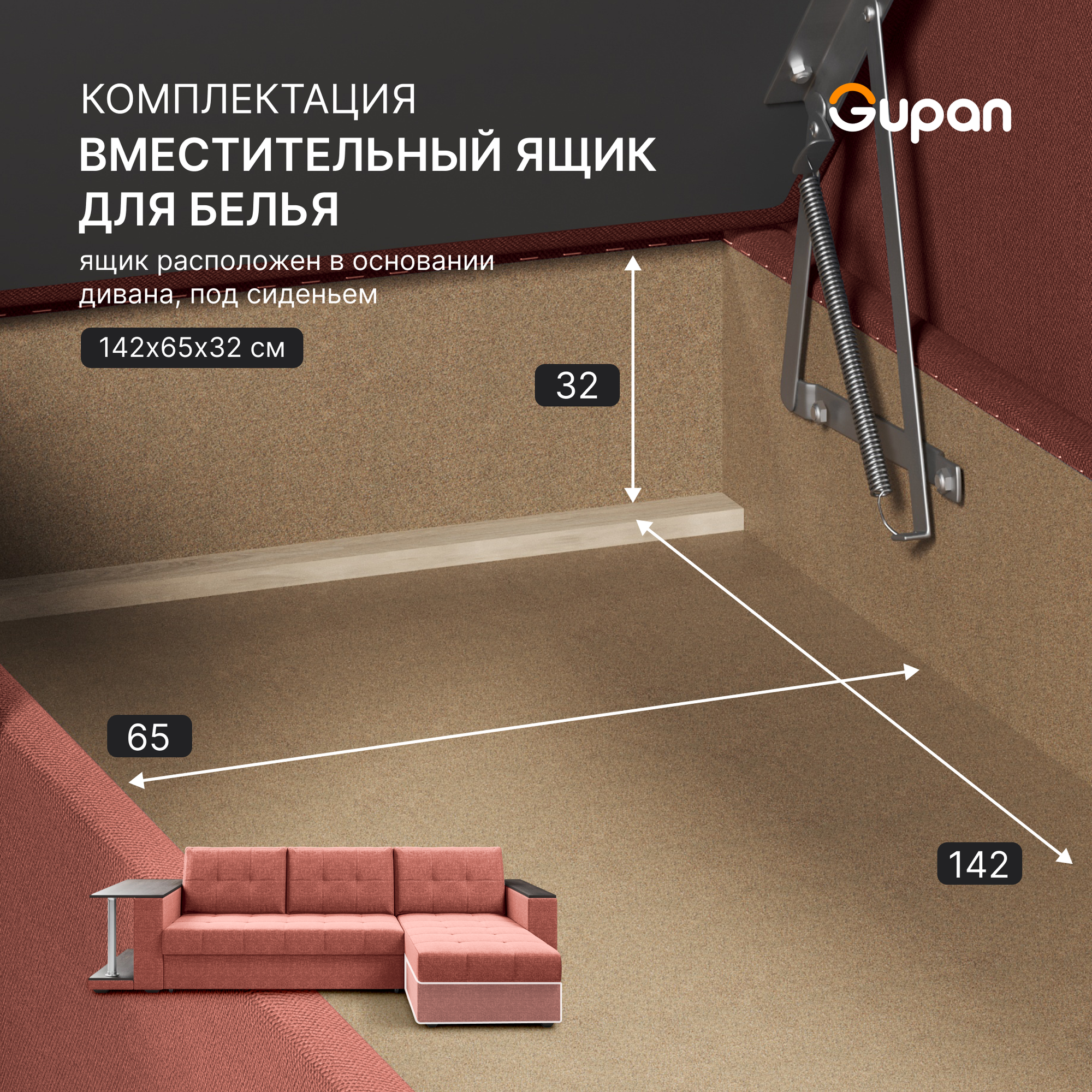 Диван угловой Gupan Атланта Классик Хит / Люкс со столом Рогожка Savana Dimrose, раскладной, механизм дельфин, беспружинный, с ящиком для белья