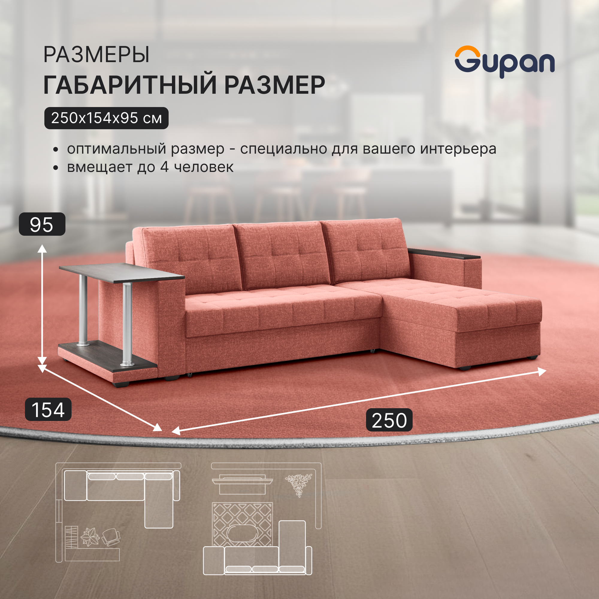 СохранитьДиван угловой Gupan Атланта Классик Хит / Люкс со столом Рогожка Savana Coral, раскладной, механизм дельфин, беспружинный, с ящиком для белья интересное: