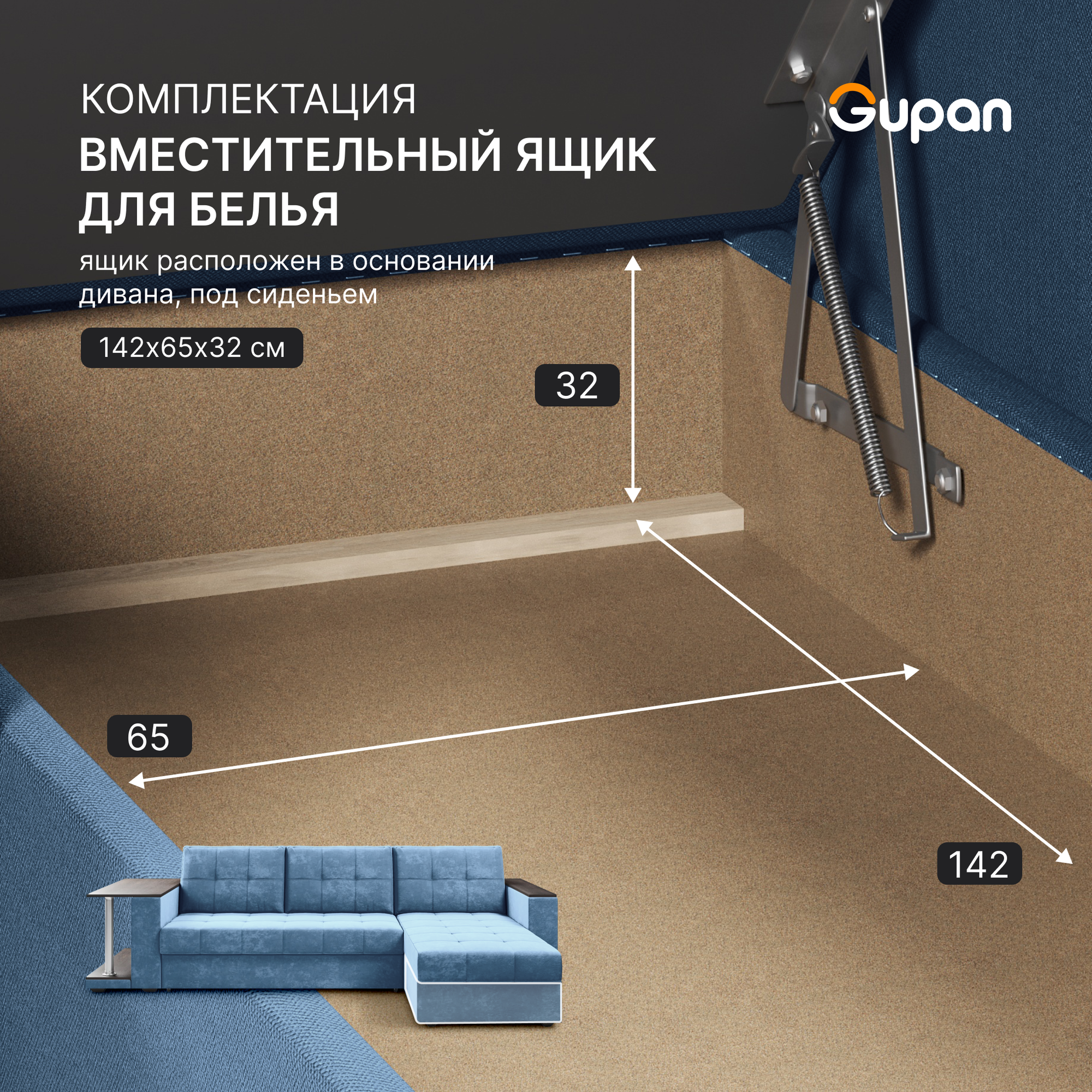 Угловой раскладной диван-кровать Gupan Toronto, беспружинный, механизм Дельфин, 220х150х90 см, наполнитель ППУ, ящик для белья