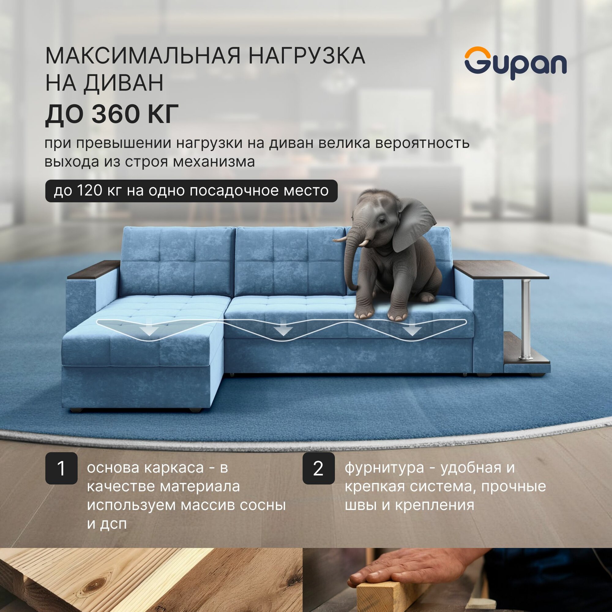 Диван угловой Gupan Атланта Классик Хит / Люкс со столом Велюр Bingo Atlantic, раскладной, механизм дельфин, беспружинный, с ящиком для белья