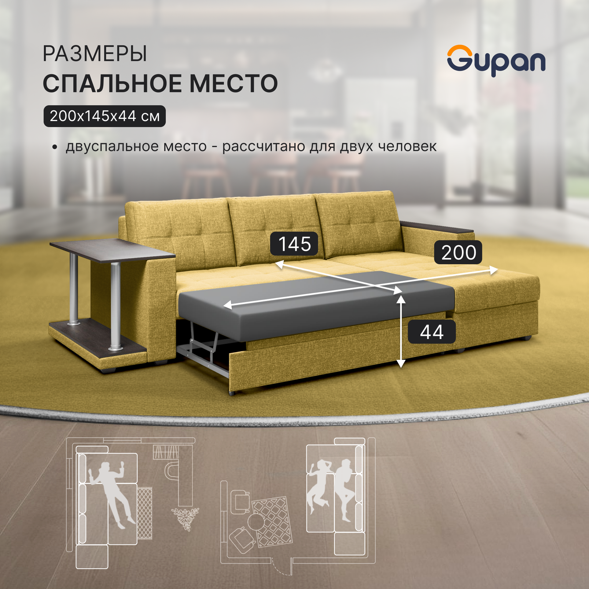 СохранитьДиван угловой Gupan Атланта Классик Хит / Люкс со столом Рогожка Savana Yellow, раскладной, механизм дельфин, беспружинный, с ящиком для белья интересное: