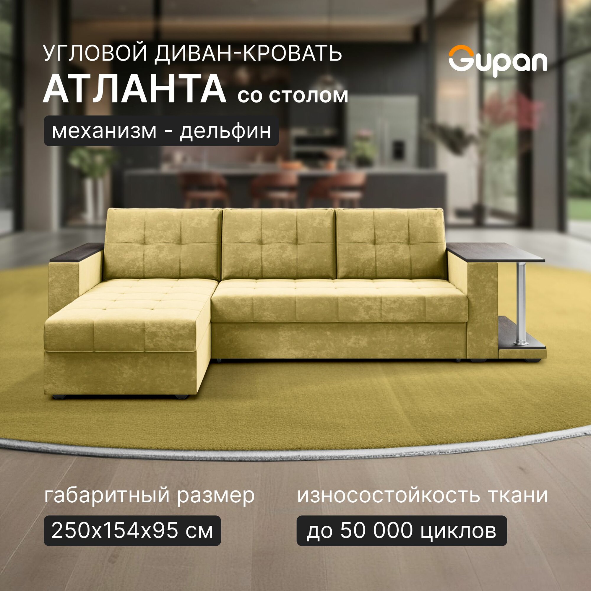 СохранитьДиван угловой Gupan Атланта Классик Хит / Люкс со столом Велюр Bingo Yellow, раскладной, механизм дельфин, беспружинный, с ящиком для белья интересное: