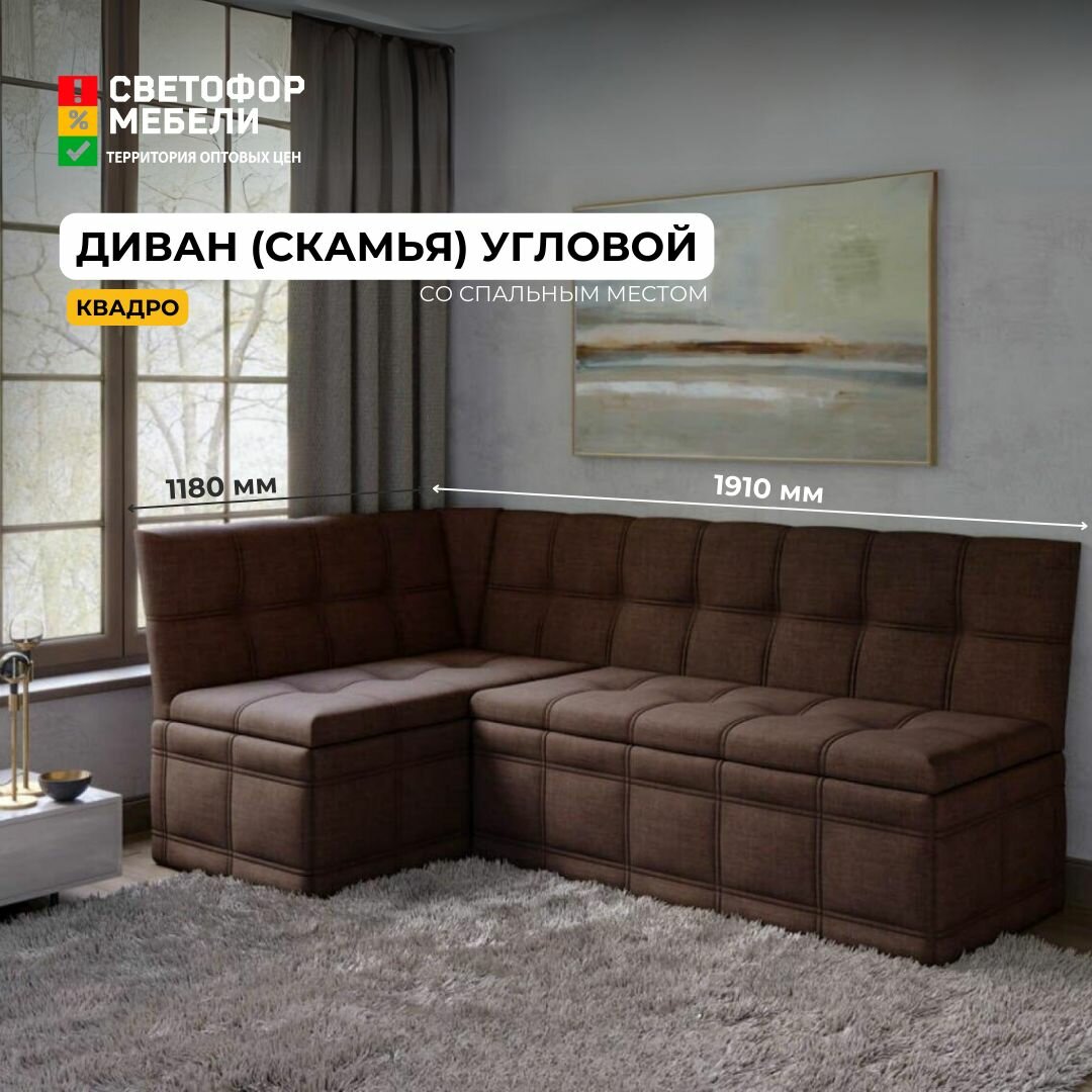 Угловой диван со спальным местом Квадро Коричневый, ЛДСП/ткань, выкатной, с ящиком для хранения, для кухни 1910х820х1180 бонмебель