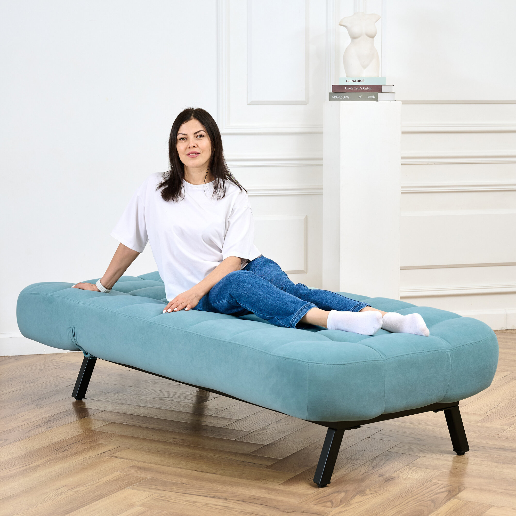 Кушетка оттоманка Brendoss 310 лофт раскладная регулируемая клик-кляк на металлокаркасе материал износостойкий велюр, цвет мятный