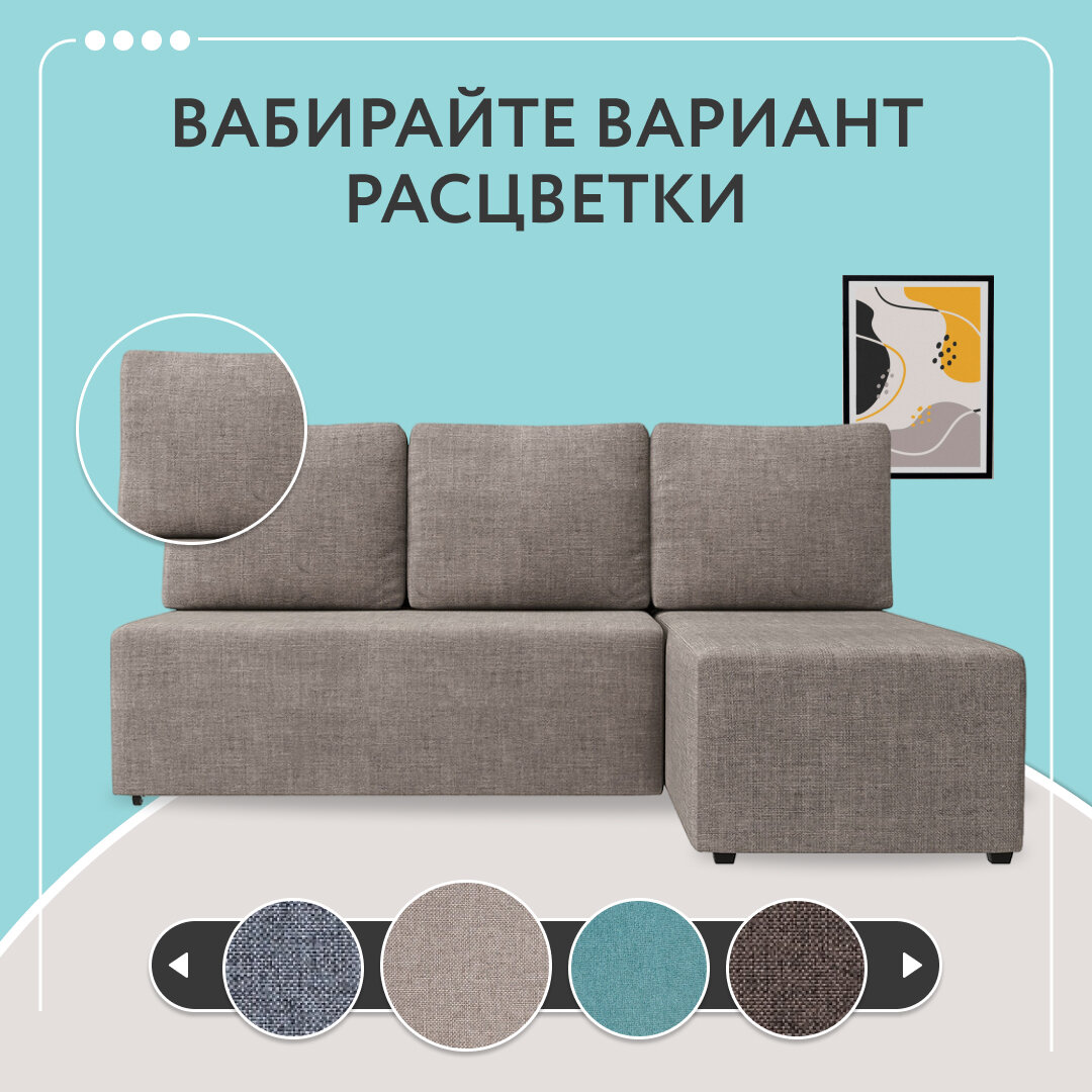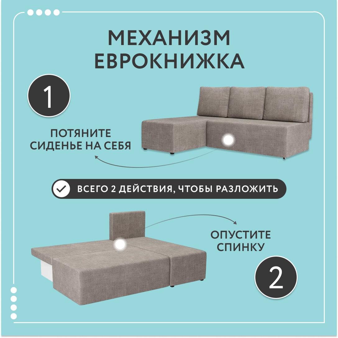 СохранитьДиван-кровать Dee One раскладной угловой Каир / Консул / Крит, еврокнижка, рогожка, 187x87x84, с ящиком, бежевый интересное: