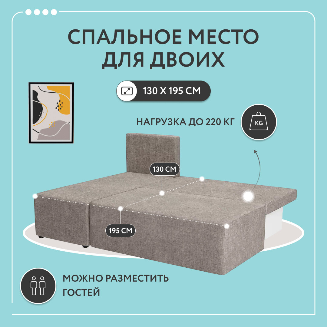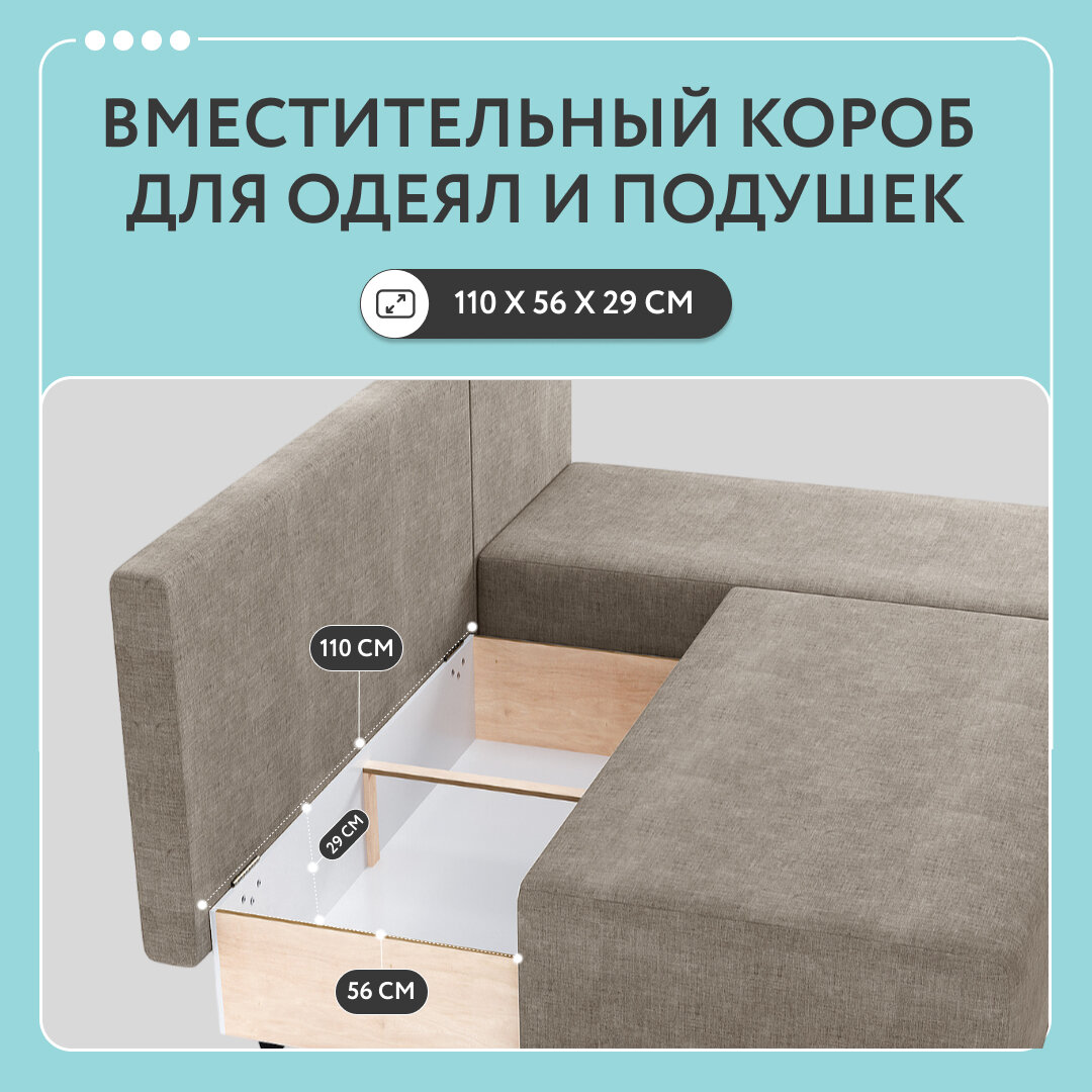 | Особенности | раскладная конструкция, съемные подушки, ящик для белья |