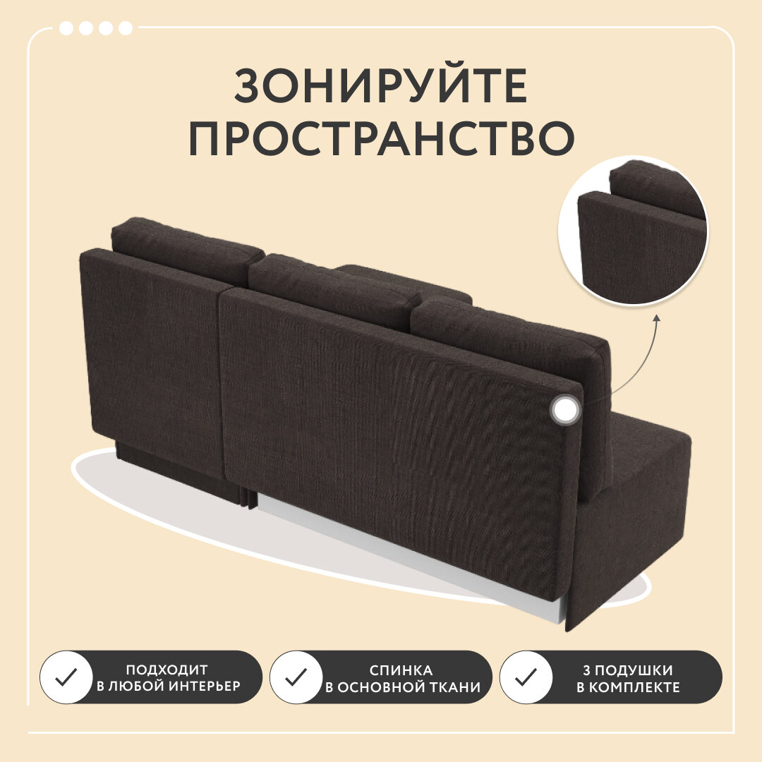 Купить Диван-кровать Dee One раскладной угловой Каир / Консул / Крит, еврокнижка, рогожка, 187x87x84, с ящиком, коричневый