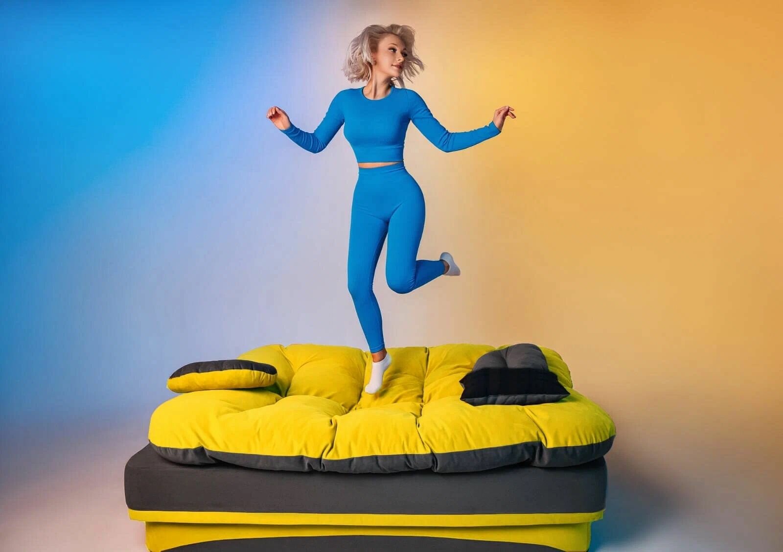 Диван кровать бескаркасный Байкал 190*98 см, спальное место 190*130 см, желтый с серым
