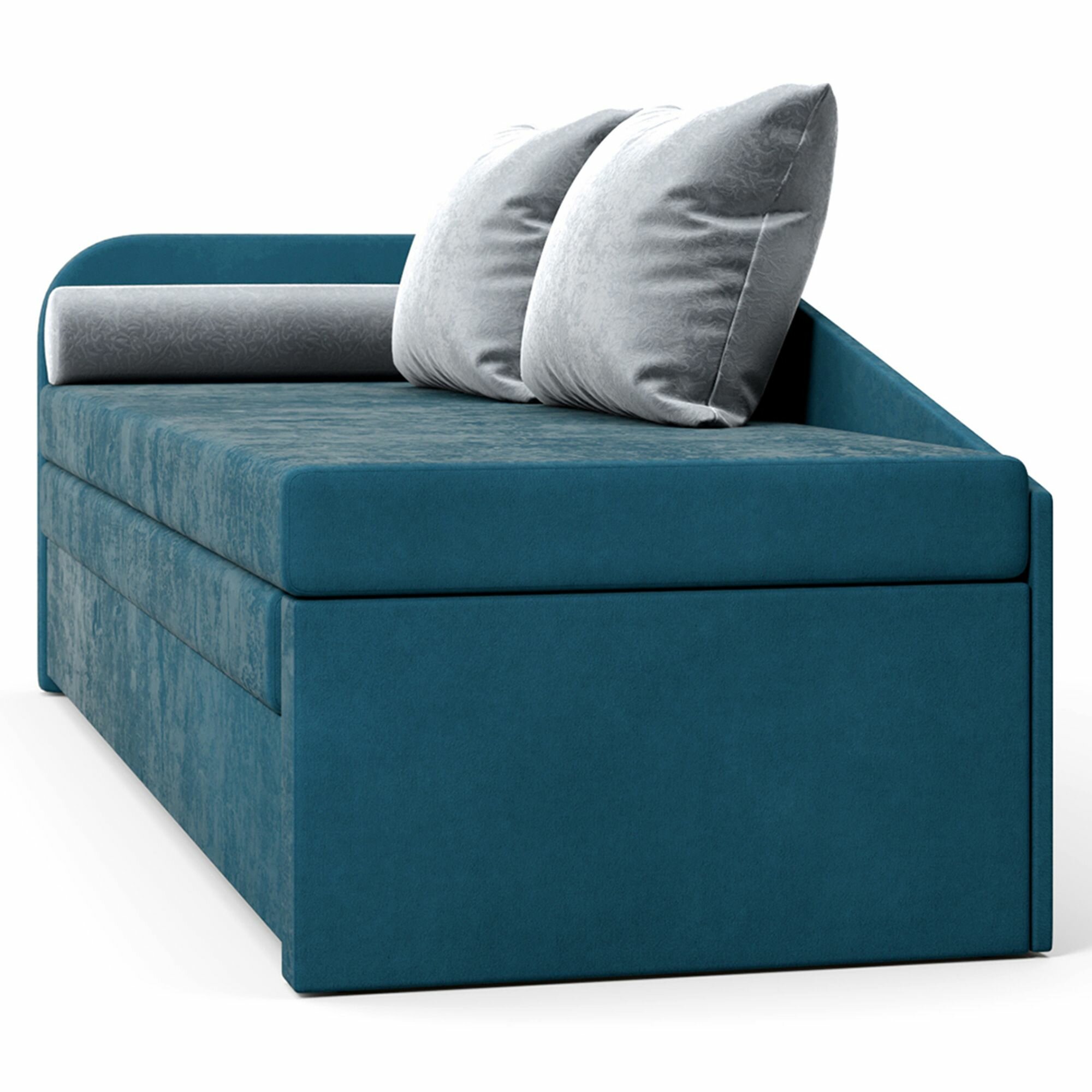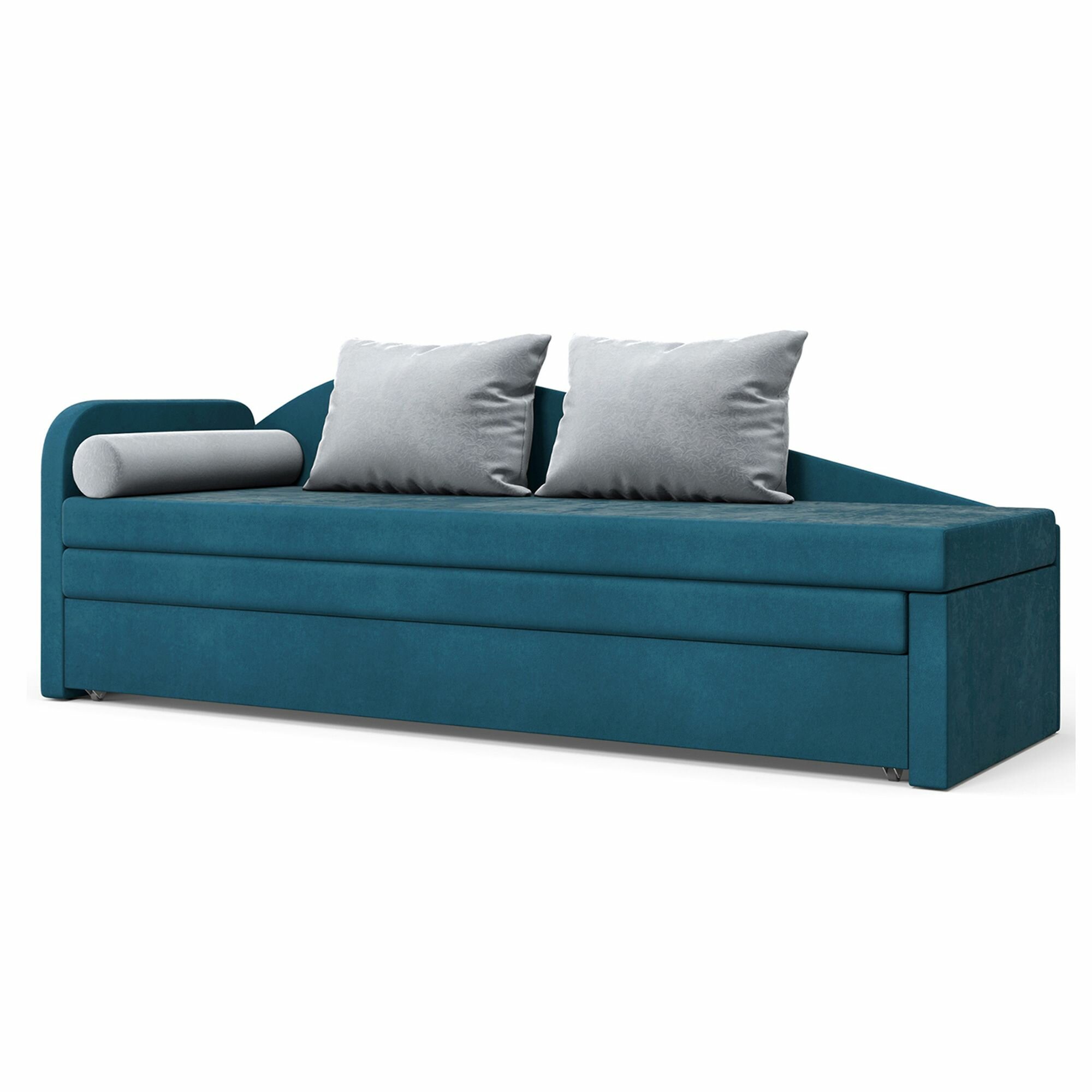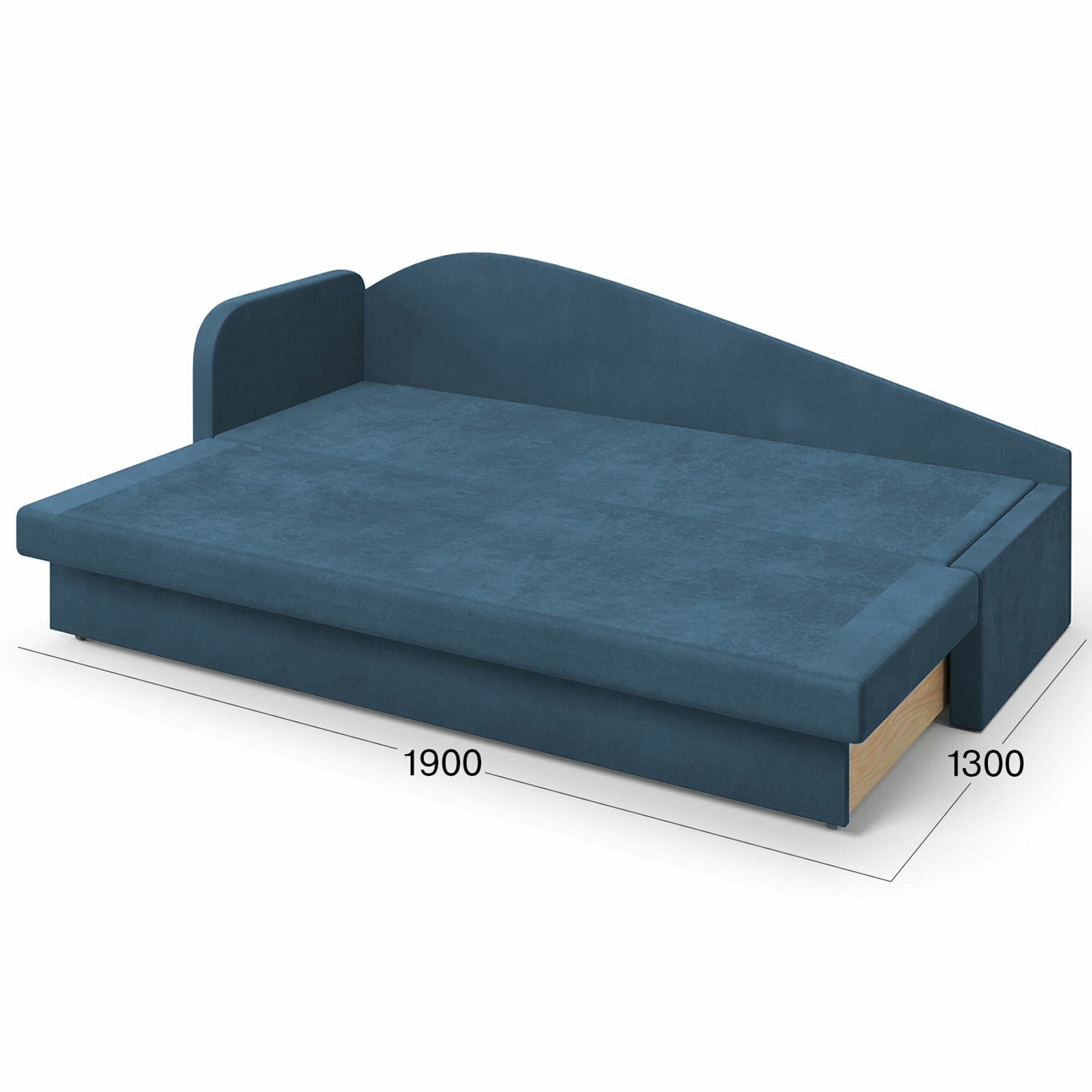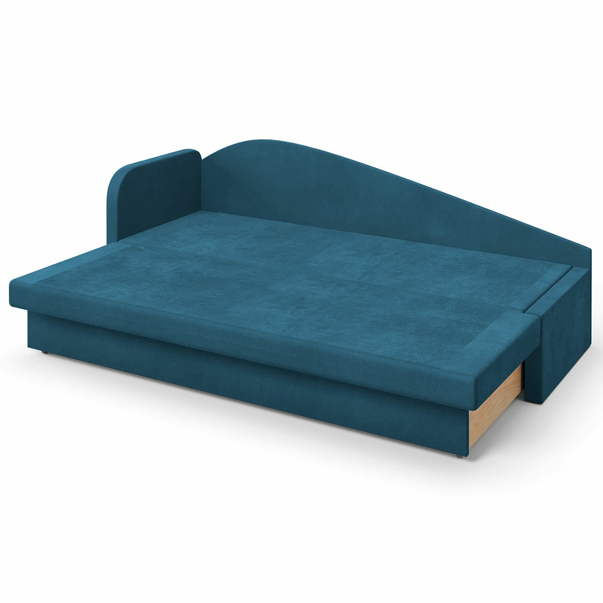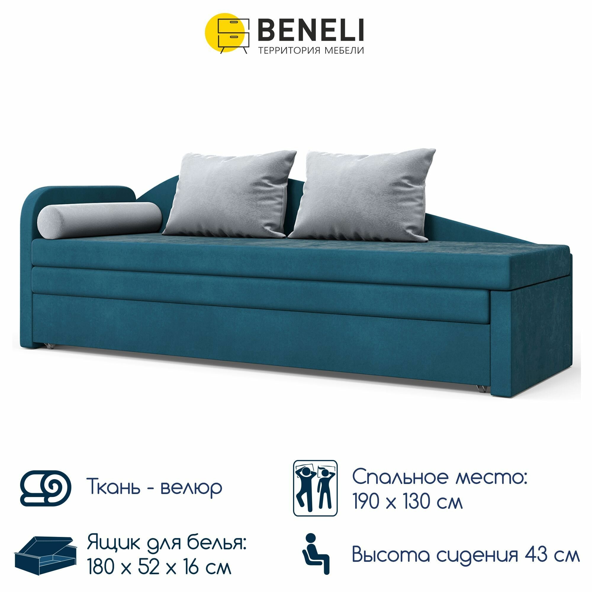 Диван-кровать, кушетка, прямой диван Beneli арчи (правый), раскладной, с ящиком для хранения, синий, Велюр, механизм Выкатной, 200х68х80см, 1шт