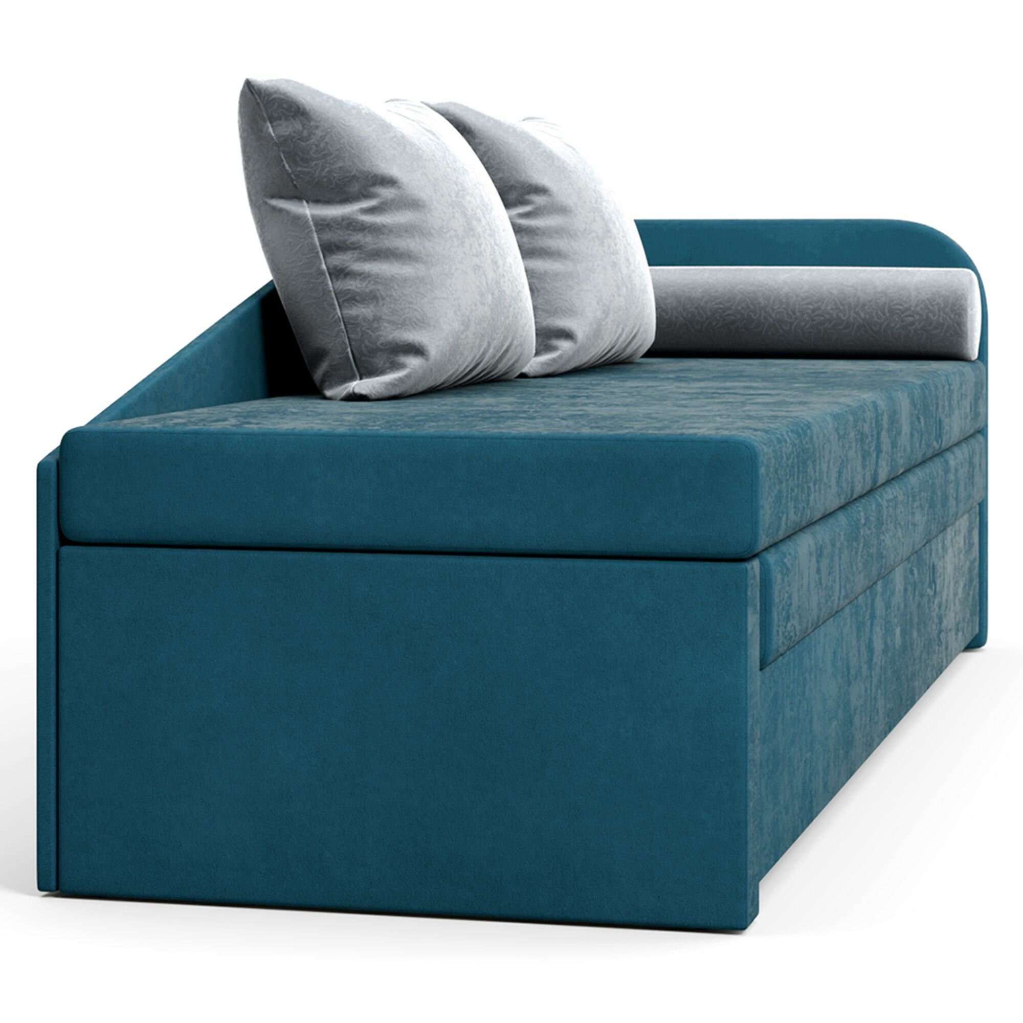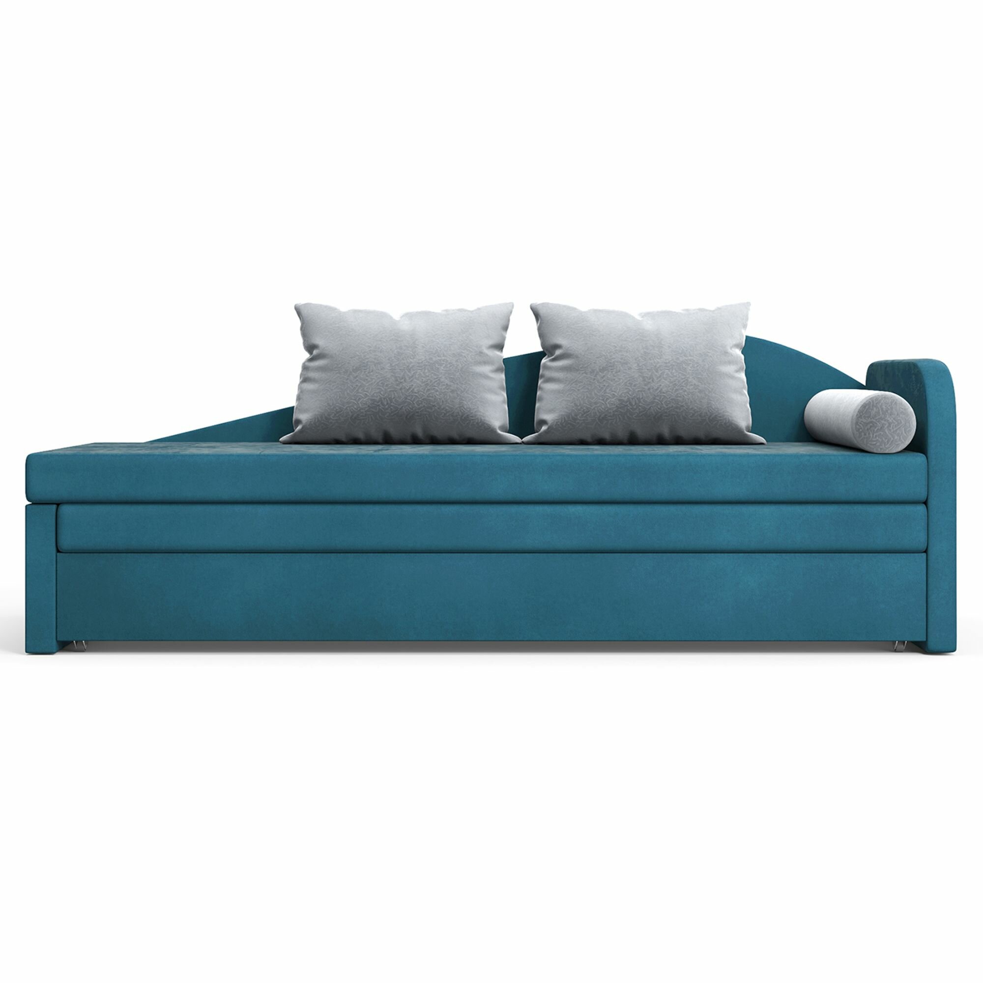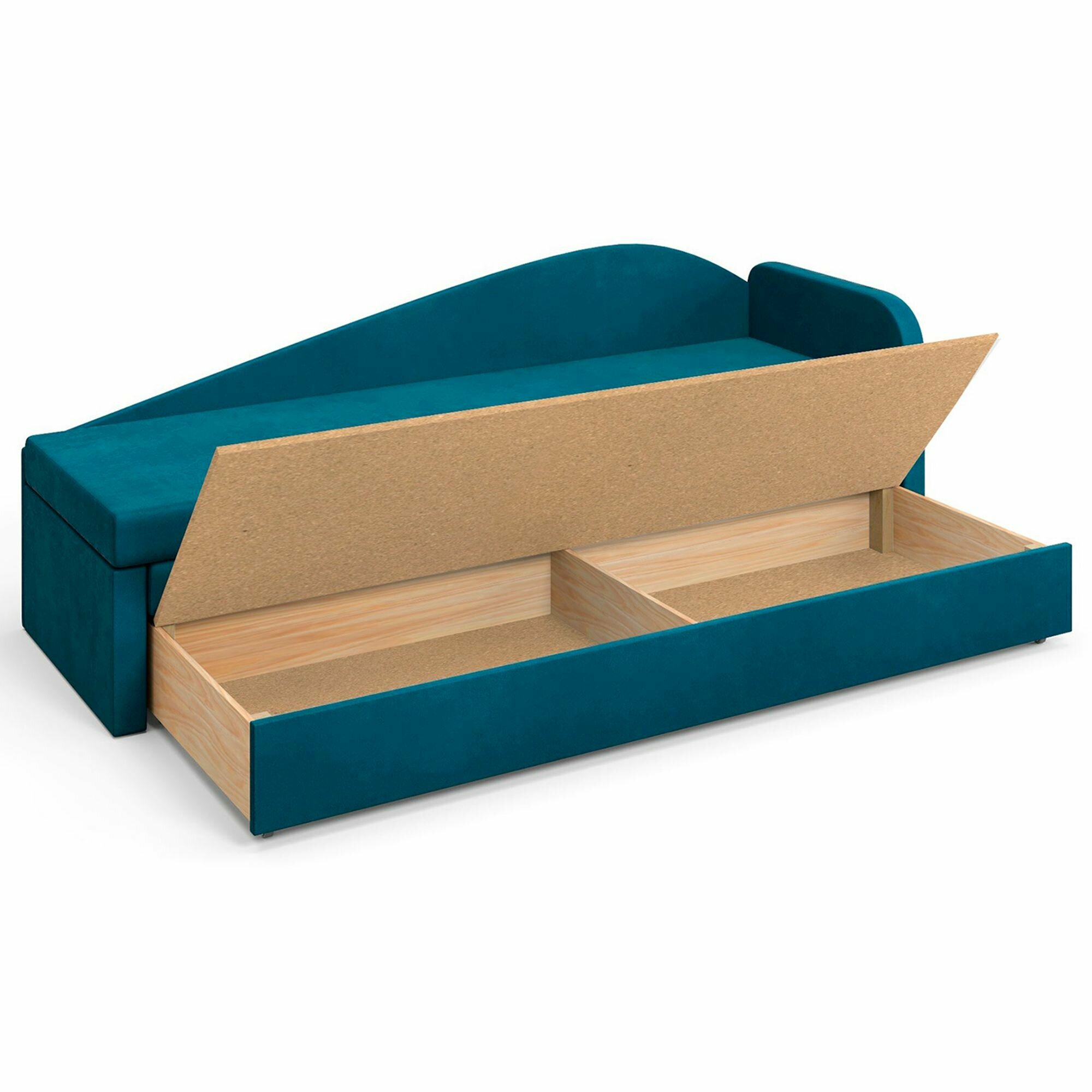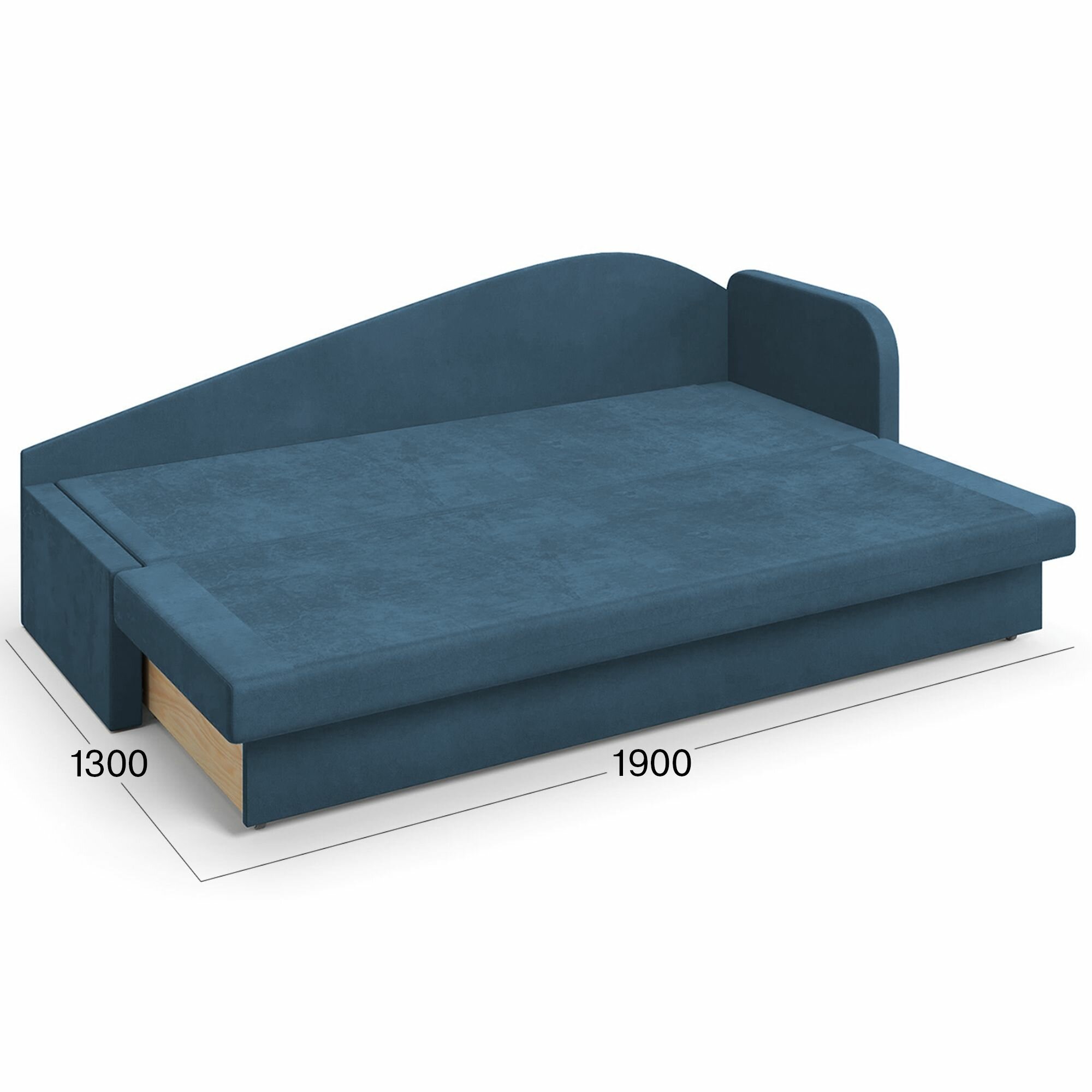 Диван-кровать, кушетка, прямой диван Beneli арчи (левый), раскладной, с ящиком для хранения, синий, Велюр, механизм Выкатной, 200х68х80см, 1шт