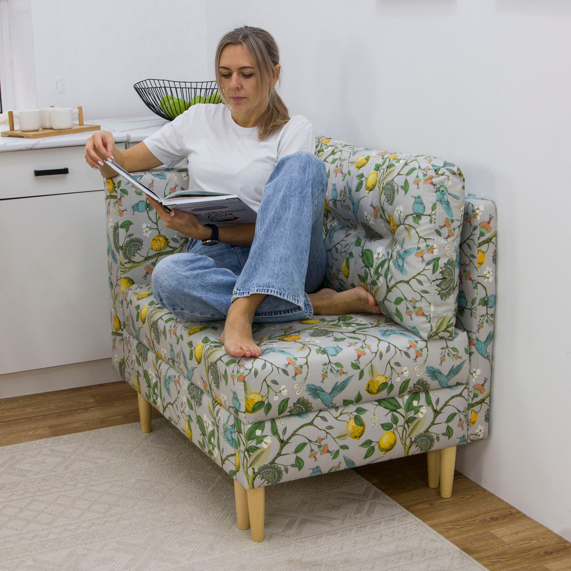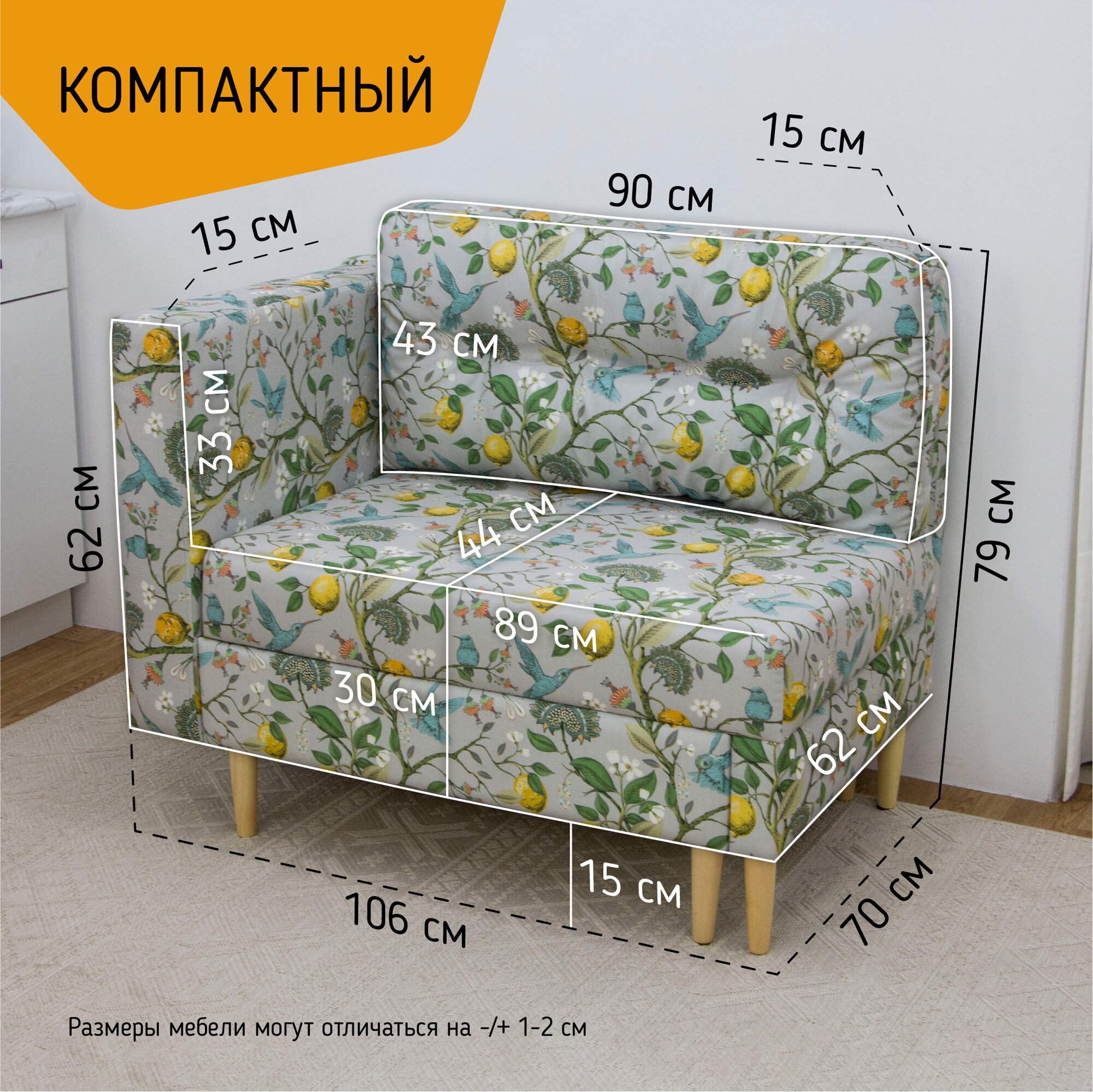 Купить Диван-кровать KRASDIVAN Чарли, размер 106х70 см, с ящиком для белья, велюр Серые лимончики