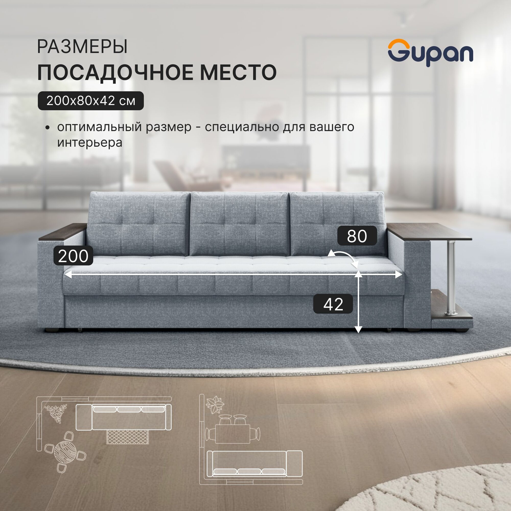 СохранитьДиван кровать Gupan Атланта Классик Люкс со столом Рогожка Savana Mouse, раскладной, механизм еврокнижка, беспружинный, с ящиком для белья интересное: